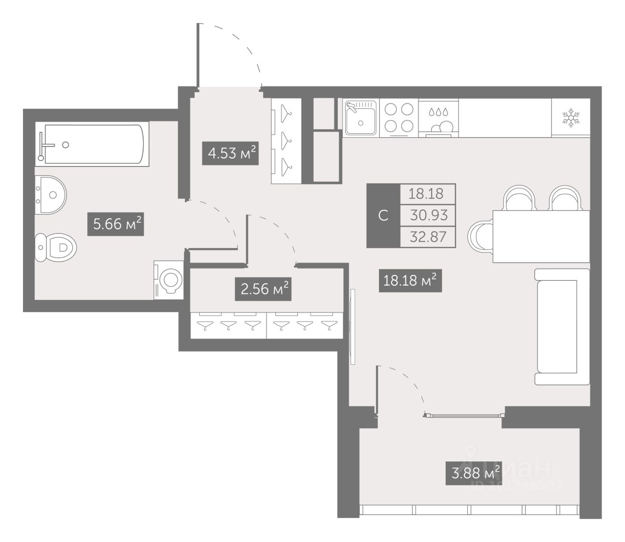 Общая площадь33,01 м2