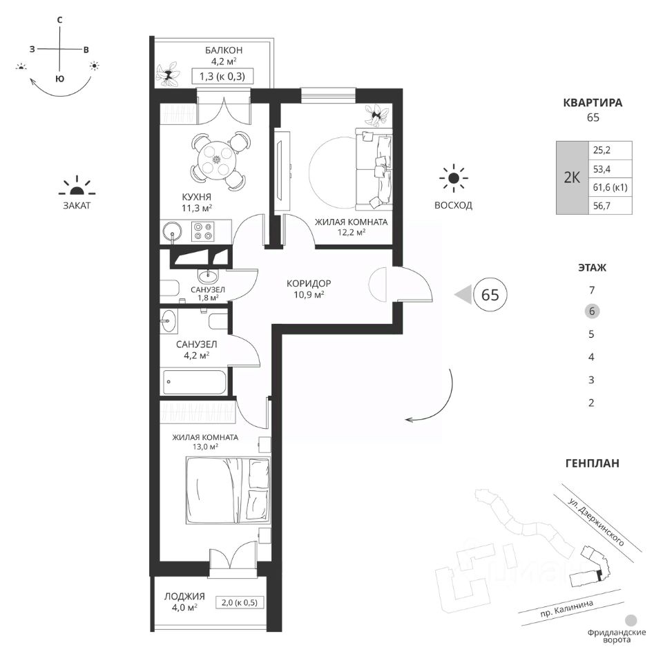 продам 2-к, Калинина проспект, 11714 612 384 ₽