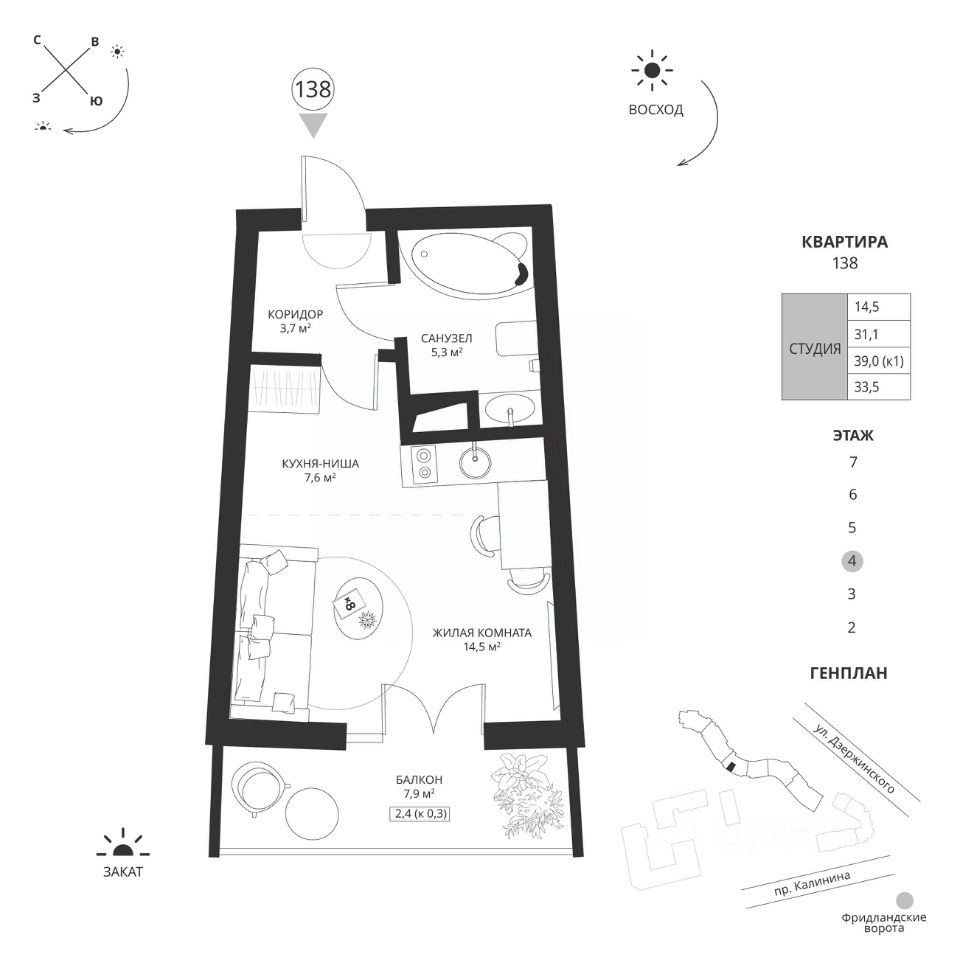 продам 1-к, Калинина проспект, 1178 539 921 ₽