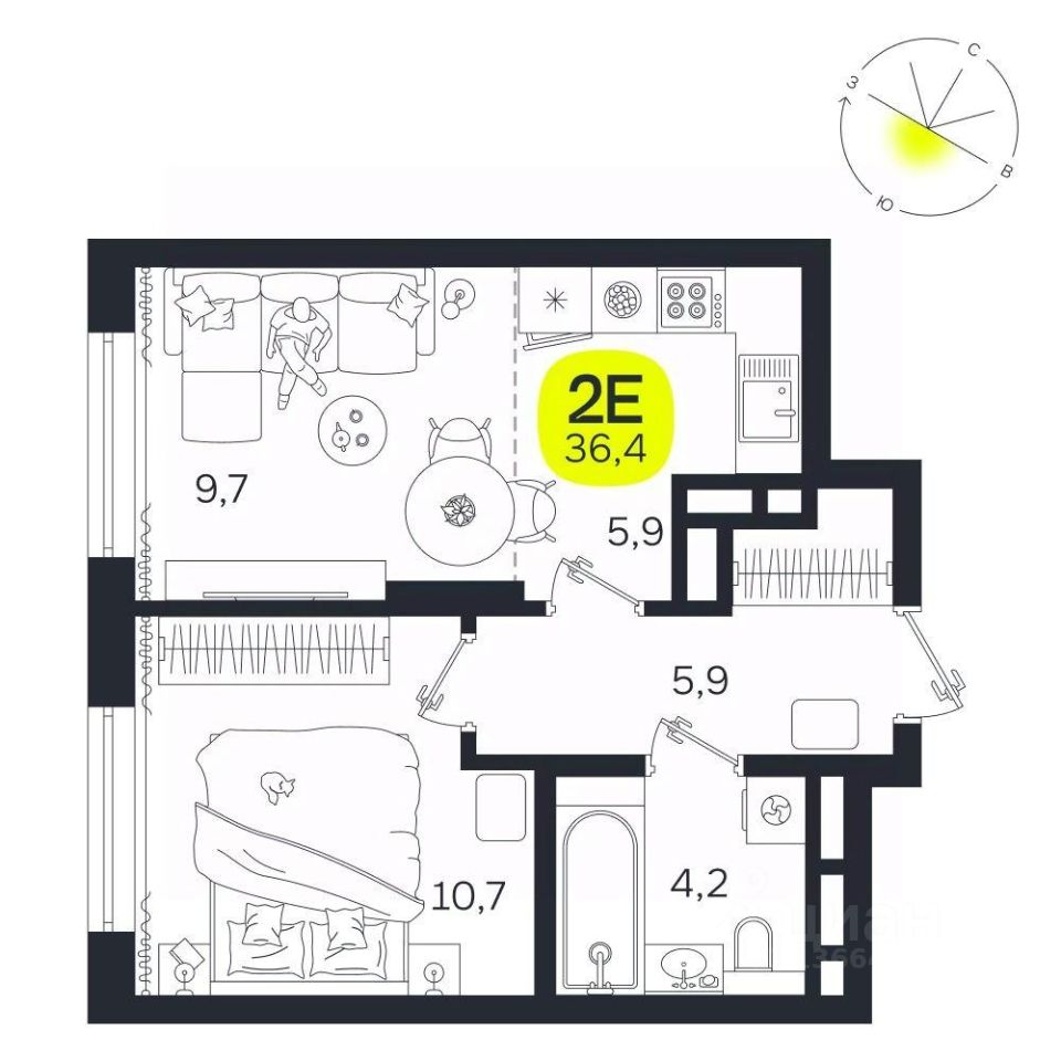 Общая площадь36,4 м2