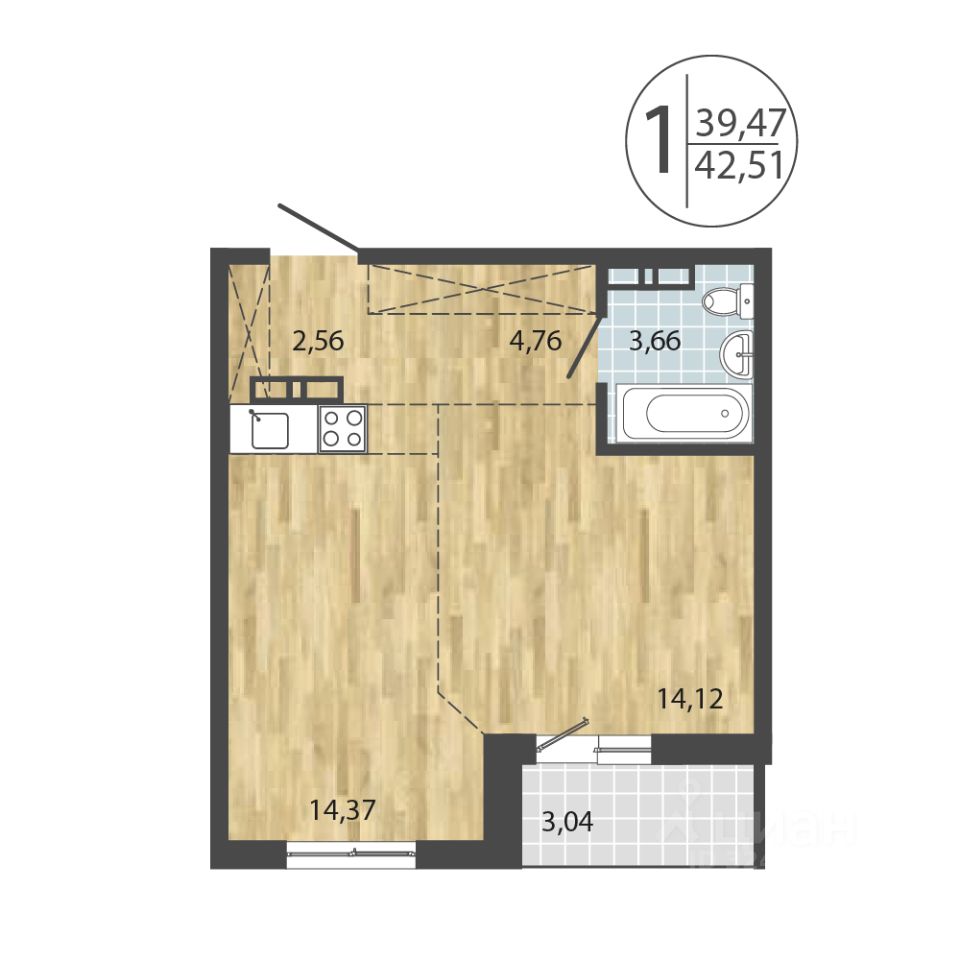 Общая площадь42,51 м2