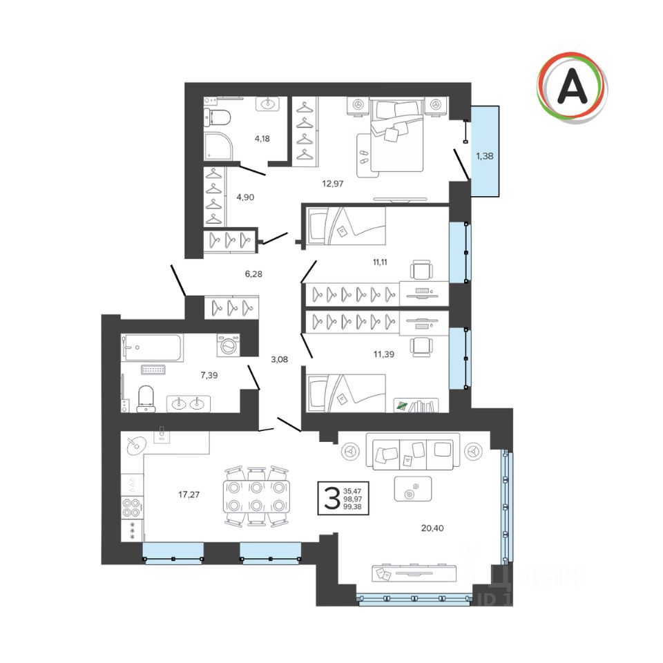 В квартирах продуман каждый квадратный метр: предусмотрены гардеробные, дополнительные санузлы, мастер-спальни, есть ниши для шкафов, теплые лоджии.