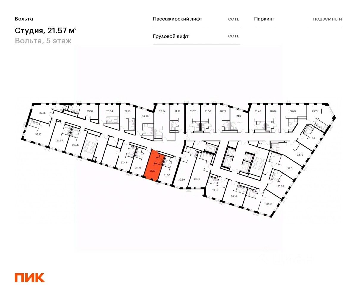Продаются апартаменты-студия площадью 21,57 кв.м на 5 этаже 15 этажного дома (Вольта, Секция 1) проекта ПИК Вольта.