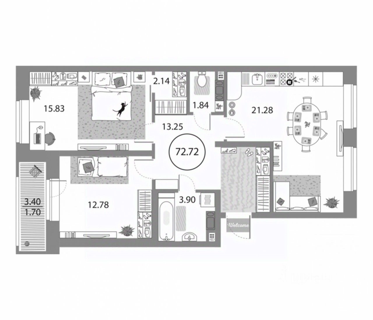 Именно здесь на 8 этaже 8-ми этажного дoмa бизнес класса, находится наша шикарная двухкомнатная квартира, общей площадью 72,7 квадратных метров. Чистовая отделка избавит Вас от лишних хлопот и финансовых вложений, сразу после сделки Вы сможете начать раскладывать свои вещи и начинать жить эту лучшую жизнь в квартире своей мечты !