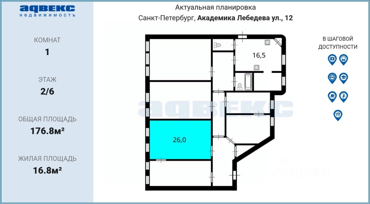 продам комнату, Академика Лебедева, 123 190 000 ₽