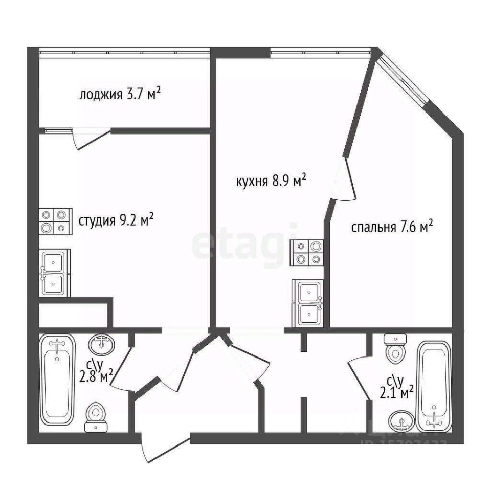 Предлагаем двухкомнатную квартиру, в которой каждая комната со своим санузлом и отдельным входом.