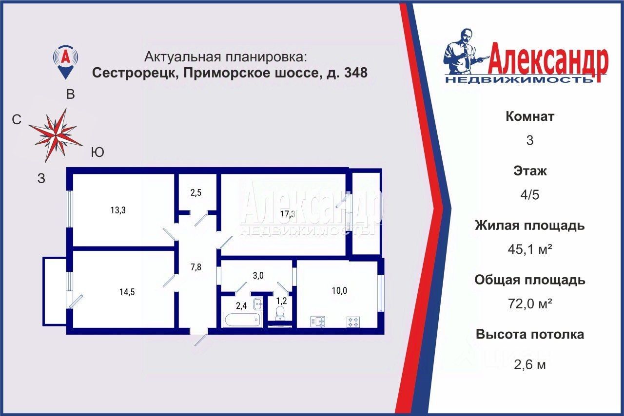 продам 3-к, Приморское шоссе, 34813 000 000 ₽