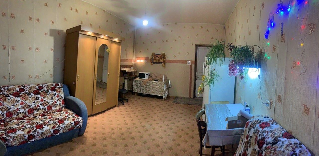 Замечательная комната в нормальном, пригодном для проживании состоянии, окна - стеклопакеты, современная мебель (двухспальный диван, 3-х створчатый шкаф), есть холодильник, стиральная машина, микроволновая печь и др.