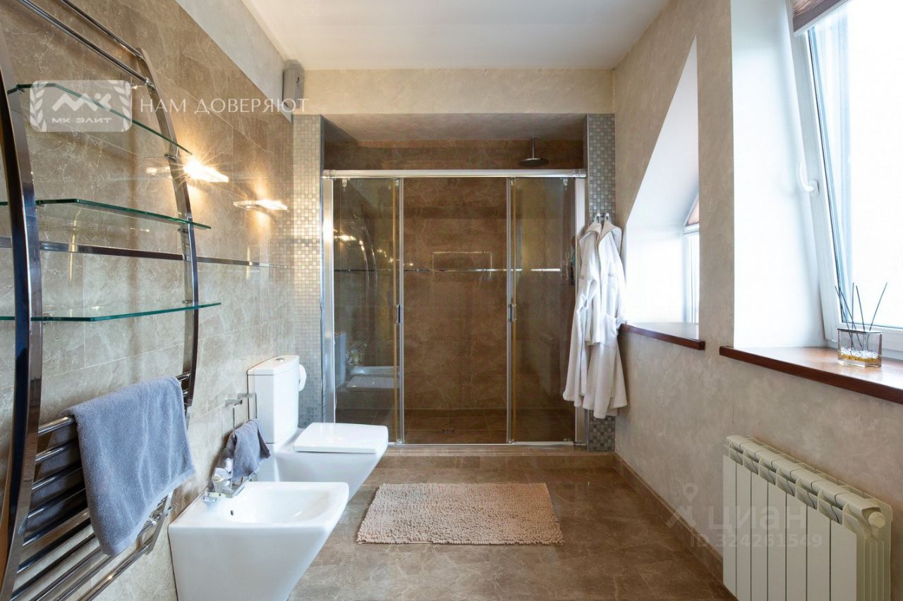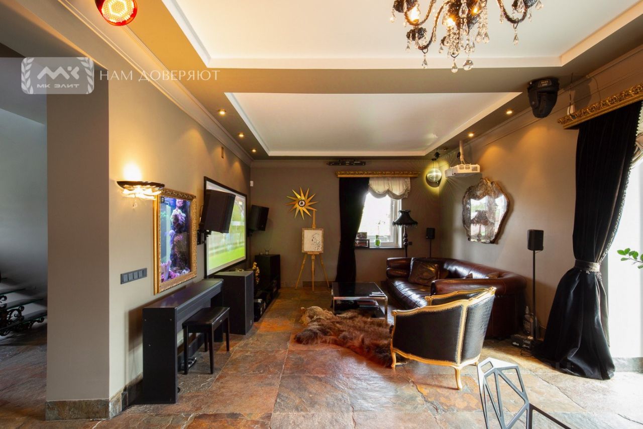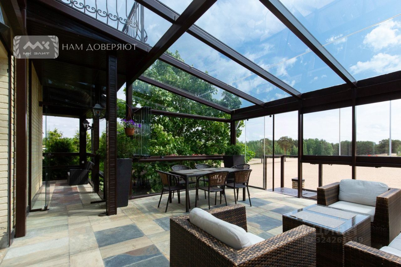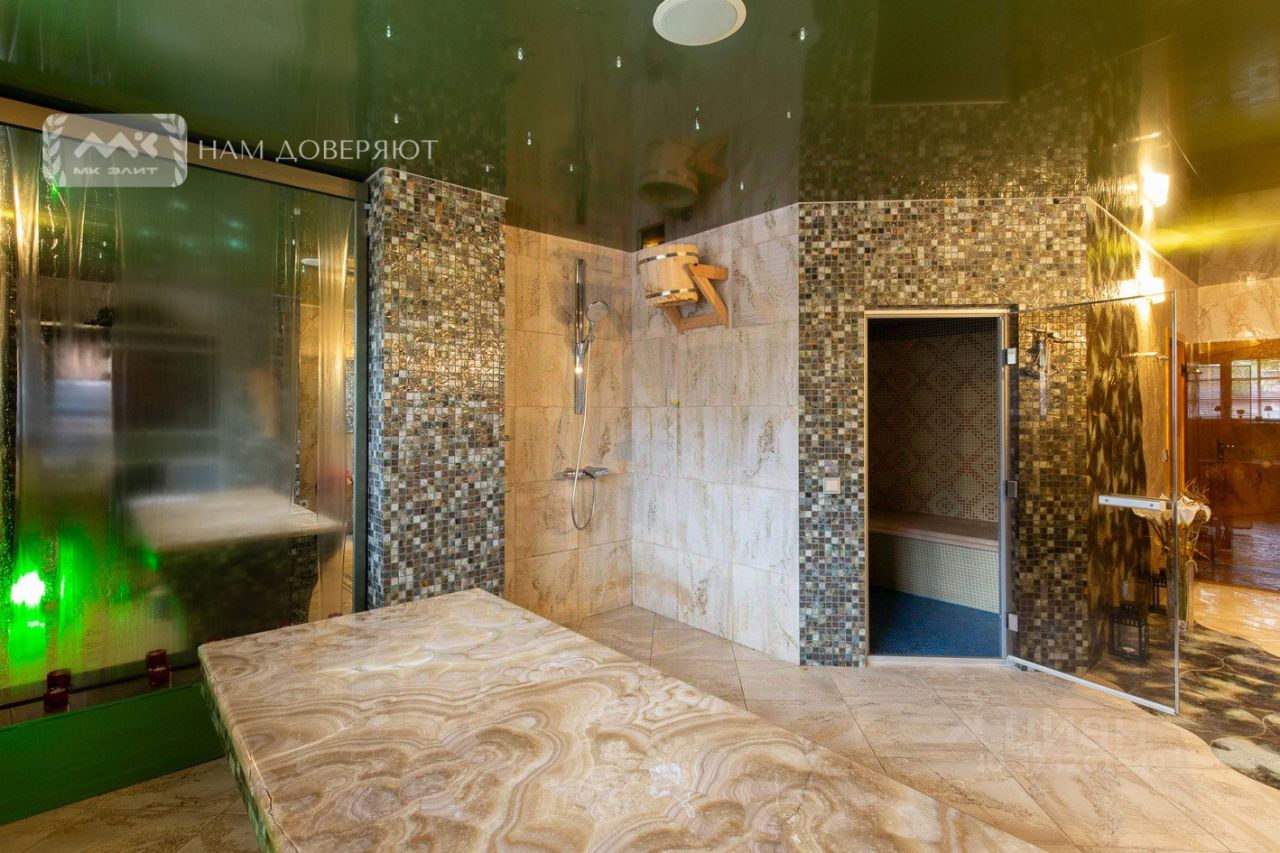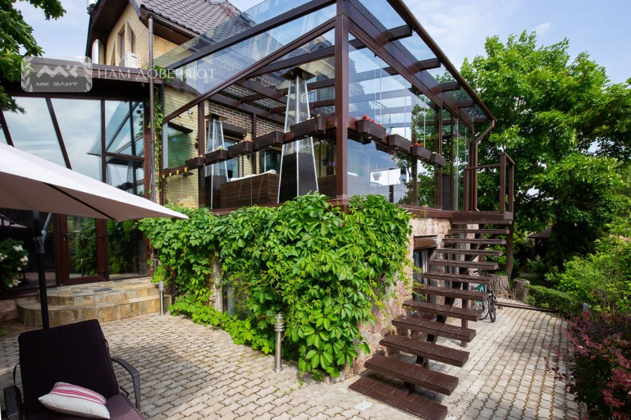 В доме есть просторная гостиная с камином и выходом на застеклённую террасу, удобная кухня, три спальни, балкон с красивым видом, бассейн, сауна, хамам, две комнаты отдыха и гараж.