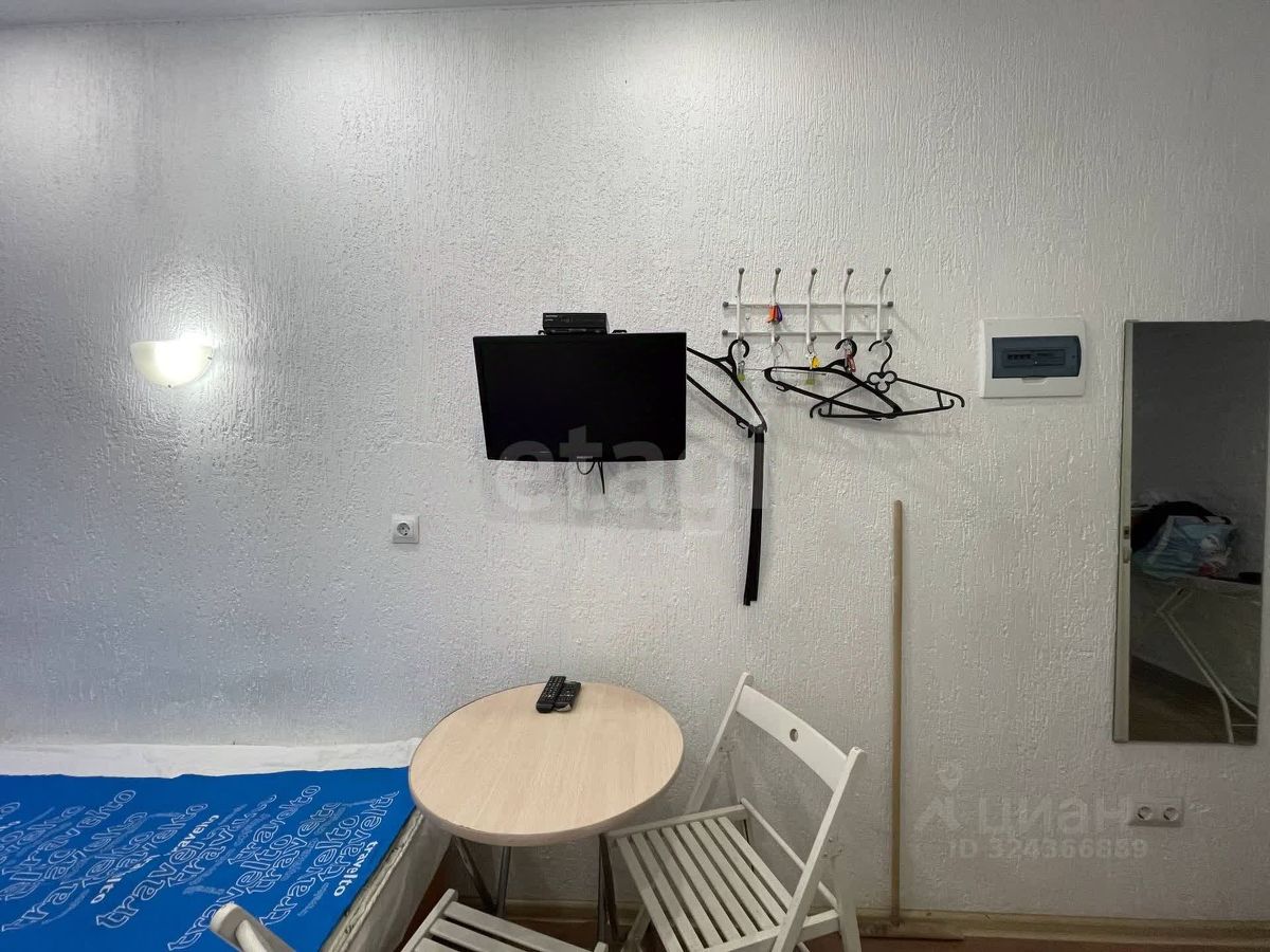Описание апартамента: — Студия с собственным санузлом и душем. — Установлен бойлер для горячей воды. — Мини-кухня: холодильник, чайник, раковина, шкафы, базовая посуда. — Две кровати, кресло-кровать, телевизор, стол с микроволновкой. — Установлен электронный замок с возможностью удалённой смены кода.
