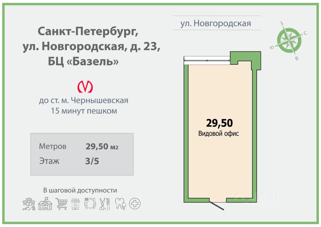 Срочная продажа! Премиальный офис 29,5 м² в бизнес-центре класса А Базель (RBI). Центр Санкт-Петербурга, Новгородская 23.