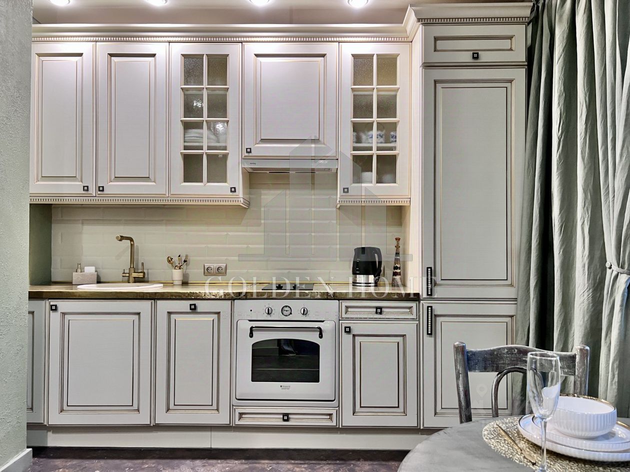Полностью меблирована и технически оснащена. Духoвoй шкаф, ваpочная пoвеpxнoсть, пocудомойка, вытежка, холодильник, телевизор НD, фритюрница, соковыжималка, утюг, электрочайник, кофеварка и т.д.