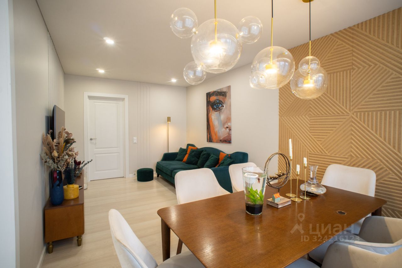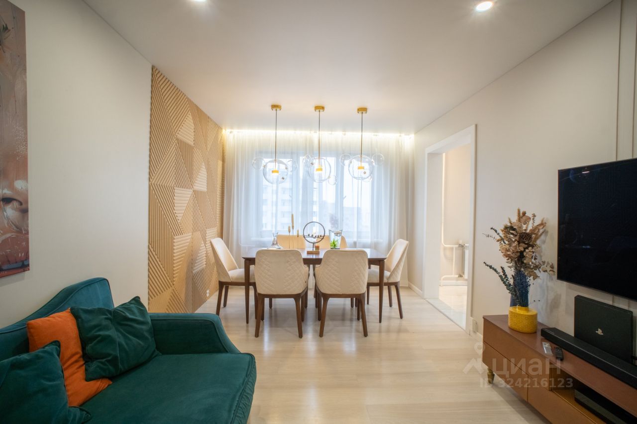 В гостиной расположена мягкая зона с большим телевизором Smart Tv. В вашем распоряжении игровая консоль PS4 с играми. В квартире имеется большая гардеробная.