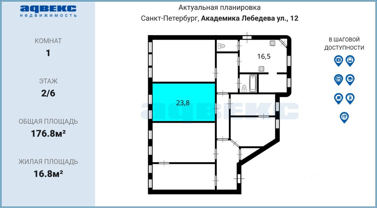 продам комнату, Академика Лебедева, 123 290 000 ₽
