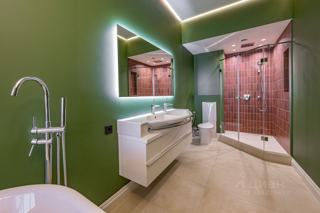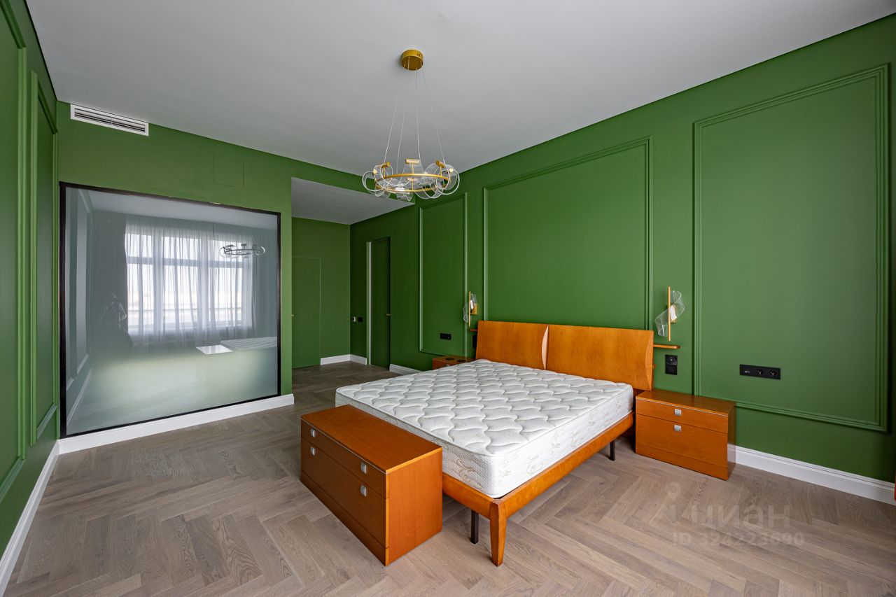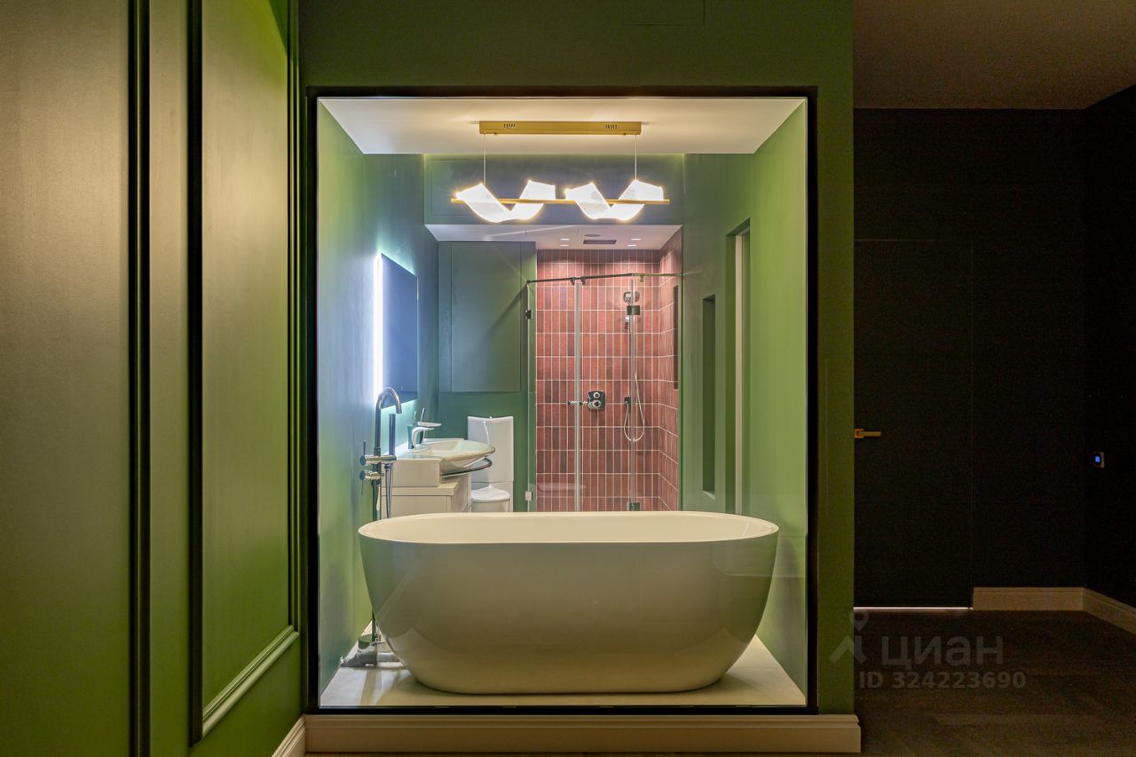Планировка: - 3 спальни (возможно 4 спальни за счёт кабинета), - кабинет (опционально), - гостиная, совмещённая с кухнейстоловой, - 3 смежных санузла, - 2 гардеробные, - постирочная с местами для хранения вещей.