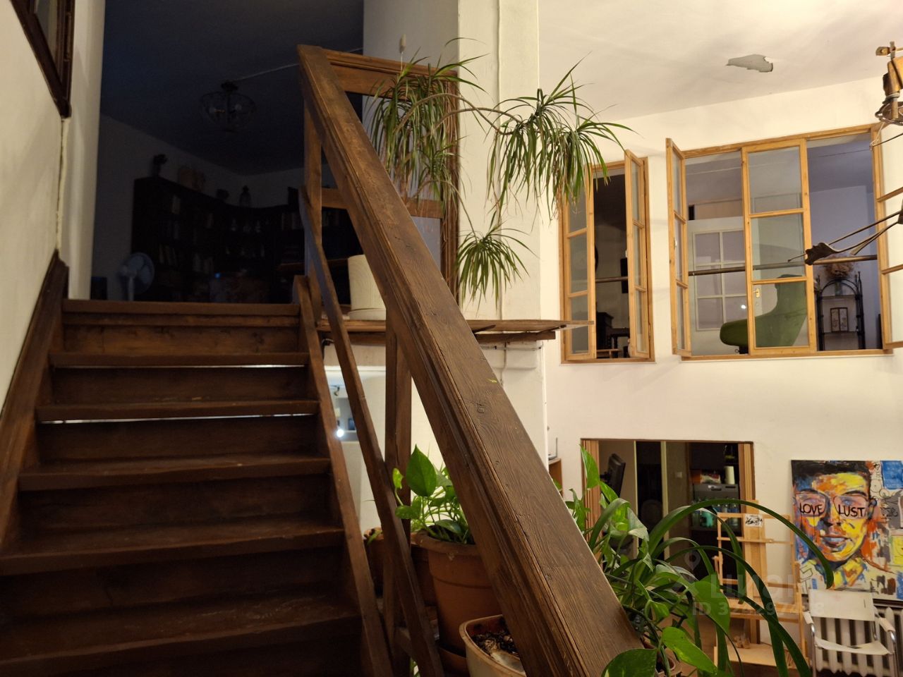 В квартире выполнен оригинальный дизайнерский ремонт, сейчас в квартире живет художник, на стенах его работы. Просторная кухня оборудована всем необходимым для удобства и кулинарных экспериментов. Санузел совмещенный, большой (12м2), на обоих этажах оборудованы удобные вместительные кладовки. В квартире есть и балкон, и застекленная лоджия, с лоджии можно выйти на общую террассу. Таких предложений в городе больше нет!