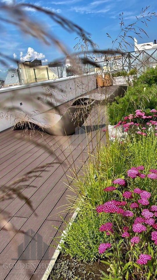На крыше дома оборудована терраса, откуда можно любоваться восхитительными видами на город, салютами в дни праздников или просто позагорать в жаркий солнечный денек.