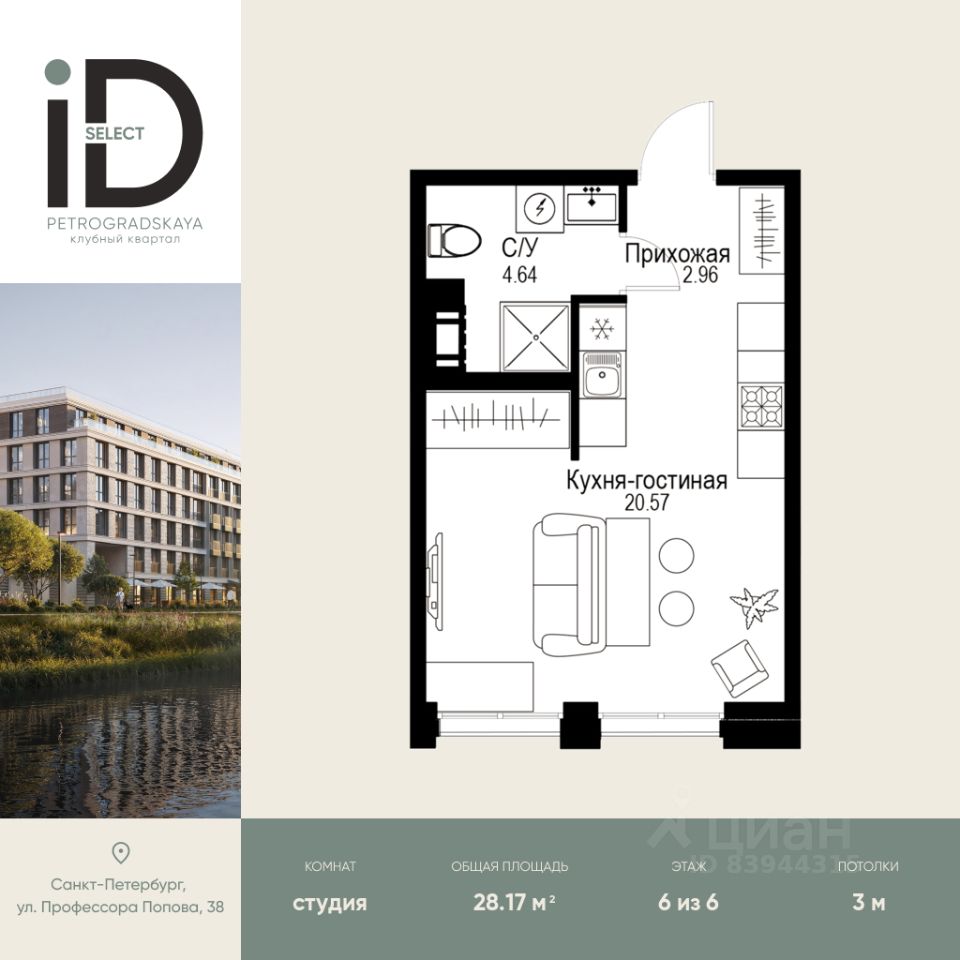 Клубный квартал iD Petrogradskaya на ул. Профессора Попова, 38 объединяет современную архитектуру, удобные планировки и развитую инфраструктуру, предлагая комфортную жизнь в престижном районе Санкт-Петербурга. Из квартир открываются виды на Иоанновский монастырь и реку Карповку. В шаговой доступности три станции метро: ''Петроградская'', ''Чкаловская'' и ''Чёрная речка''. 3-метровые потолки и эксклюзивные планировки создают атмосферу простора и уюта. Внутреннее пространство квартала включает благоустроенные дворы, курдонёры и подземный паркинг. Квартиры площадью от 20 до 136 м² с кухнями-гостиными до 40 м² и террасами с панорамными видами сдаются без отделки, оставляя свободу для индивидуальных интерьерных решений.