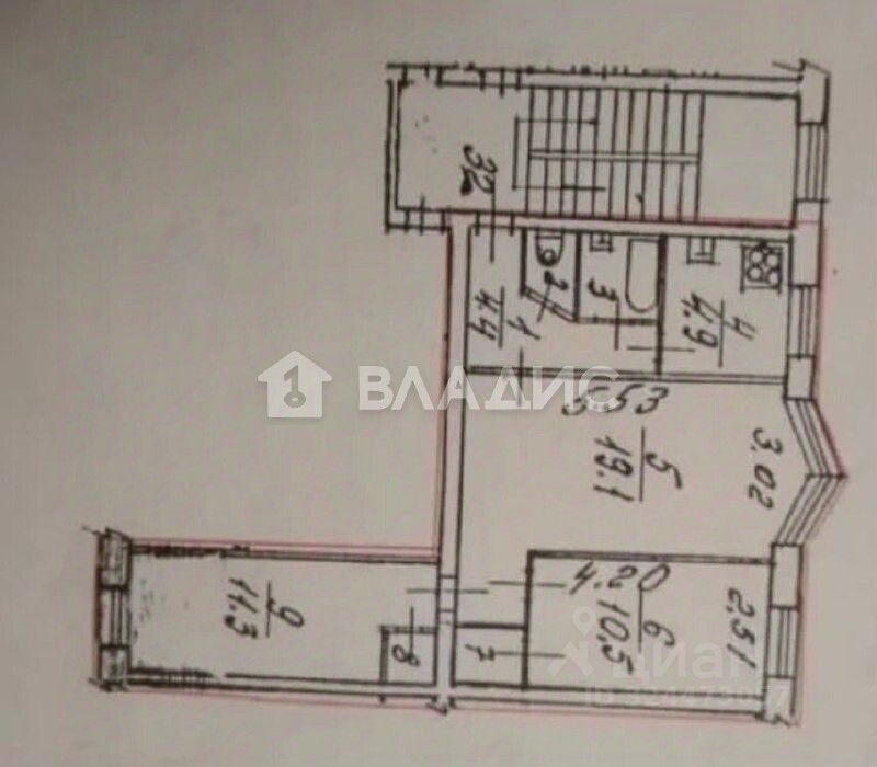 Общая площадь квартиры составляет 55,6 кв. м, из которых 40,9 кв. м — жилая площадь. Три изолированные комнаты с окнами на улицу создают уютную атмосферу. Площадь комнат — 19,1 кв. м, 10,5 кв. м и 11,3 кв. м соответственно.