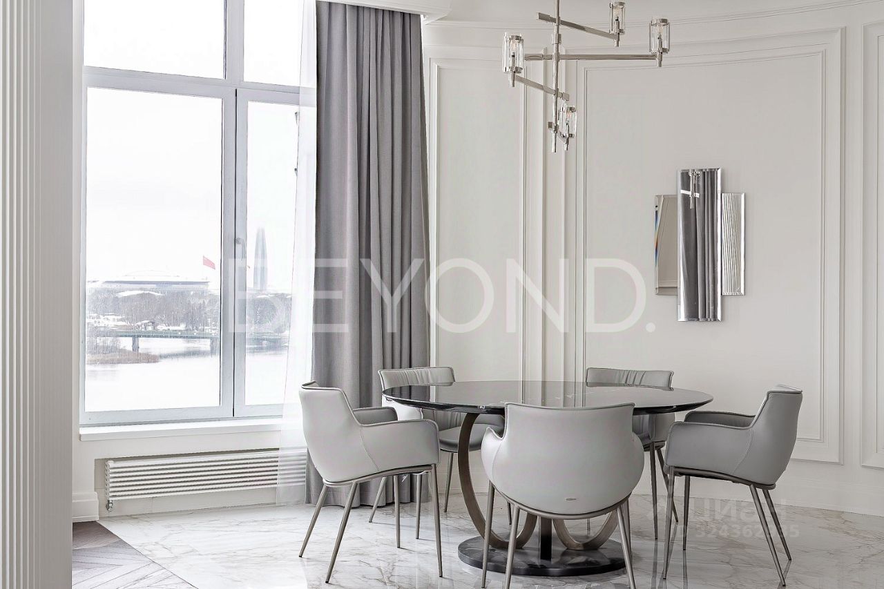 Редкое предложение! Предлагается к продаже роскошная видовая квартира общей площадью 265 кв. м с тремя спальнями и огромной кухней-гостиной, четырьмя санузлами, постирочной. Каждая из спален со своей гардеробной и балконом. Гостиная наполнена светом и воздухом. Ее огромные панорамные окна выходят на юг и на запад, там где соединяются Малая Невка, река Ждановка и Финский залив. В квартире выполнен высококлассный дизайнерский ремонт, особое внимание уделено выверенной стилистике, функционалу и премиальным отделочным материалам: оникс, панели из натурального дерева, латунь. Мебель Catelan Italy, Leight, Rete, техника Graude, Miele. Светильники от Ralph Lauren. Центральное кондиционирование во всех комнатах, современная система очистки воды, шторы на электроприводе и т.д. Мастер-спальня со своей гардеробной и эффектным санузлом. В постирочной помимо стирально-сушильной машины Miele установлены удобные хозяйственные шкафы. Окна двух детских и мастер-спальни выходят в тихий благоустроенный внутренний двор. Элегантная кухня Leight (Германия) полностью оснащена качественной бытовой техникой, в том числе профессиональной вытяжкой. Площадь кухни-гостиной составляет более 150 кв. м и объединяет несколько зон: кухню с удобным островом, обеденную зону с большим столом, диванную группу (Италия) с TV зоной и био-камином. В эркере гостиной организована лаунж-зона с удобными креслами для отдыха и наблюдения за проплывающими мимо корабликами и мерцающими огнями Лахта центром и стадионом Зенит-ареной. В эффектной мастер-спальне с кроватью Theodore Alexander две отдельные зоны хранения для мужской и женской одежды. Потолки 3,4м, индивидуальный лифт в квартиру, отдельный вход для персонала. К безусловным плюсам клубного дома Мальта можно отнести такие особенности как эффектное лобби с круглосуточной охраной и консьержем, детская игровая комната с видеонаблюдением, оборудованная переговорная, помещения для отдыха водителей, комнаты хранения велосипедов и колясок, огромные высококачественные окна Reynaers Aluminium, трехступенчатая очистка воды, тепловой пункт в каждой квартире, центральное кондиционирование, бесшумные лифты Kone с подъемом из паркинга в квартиру.