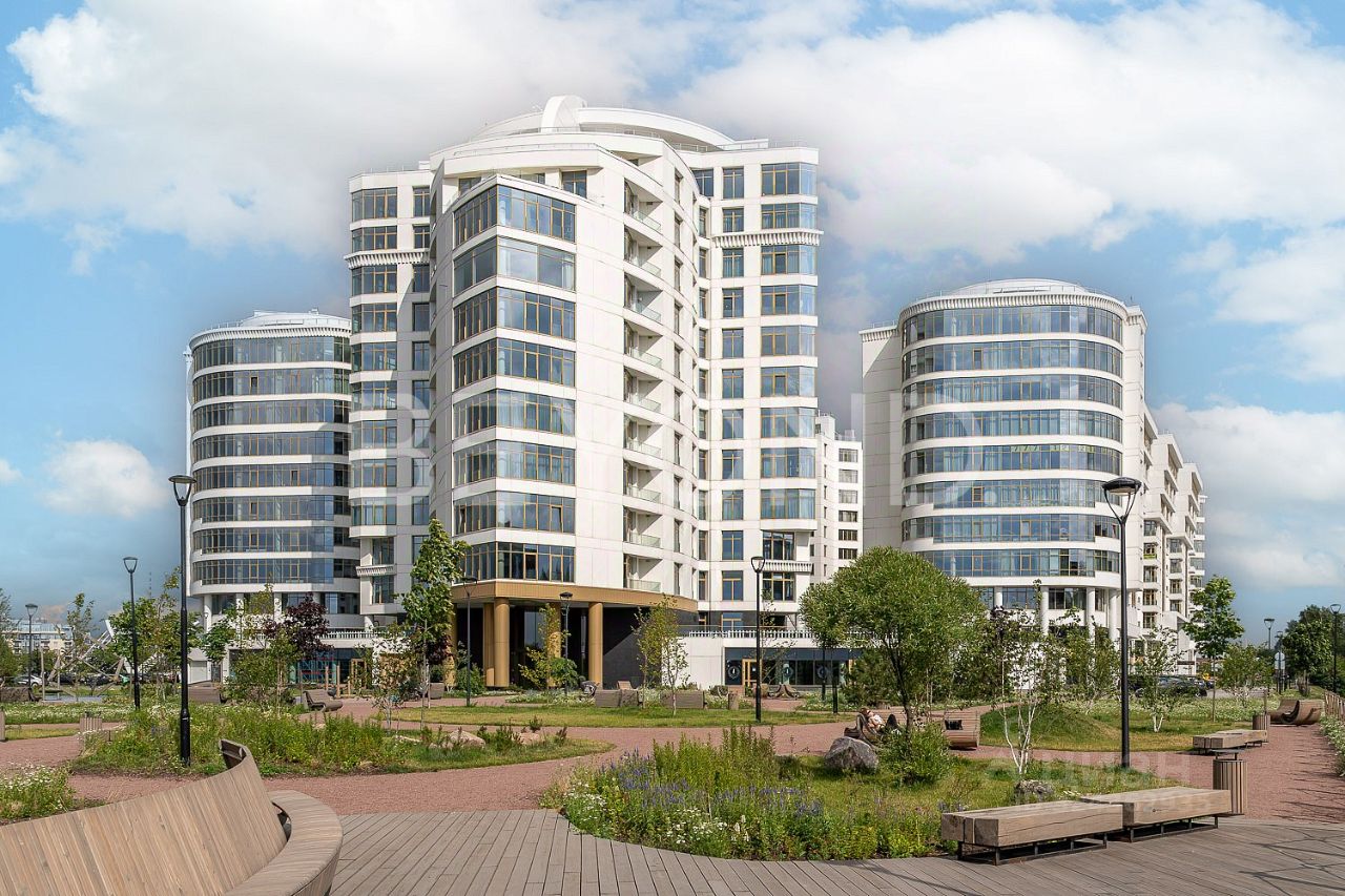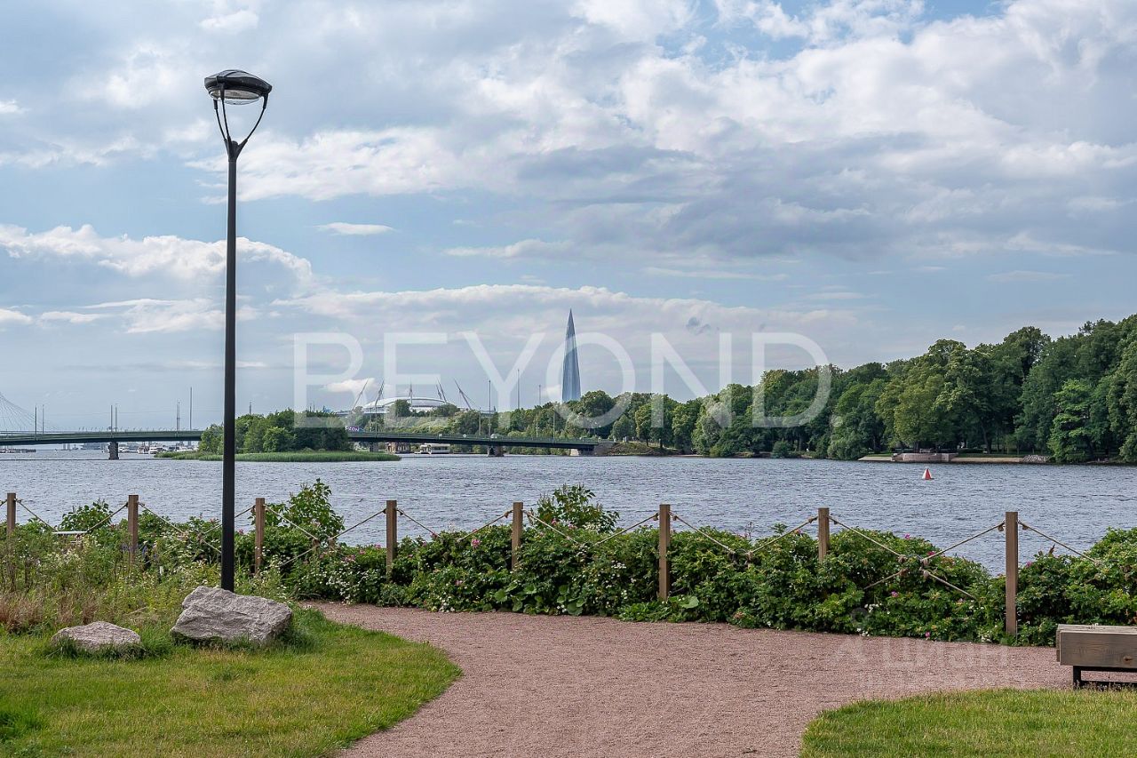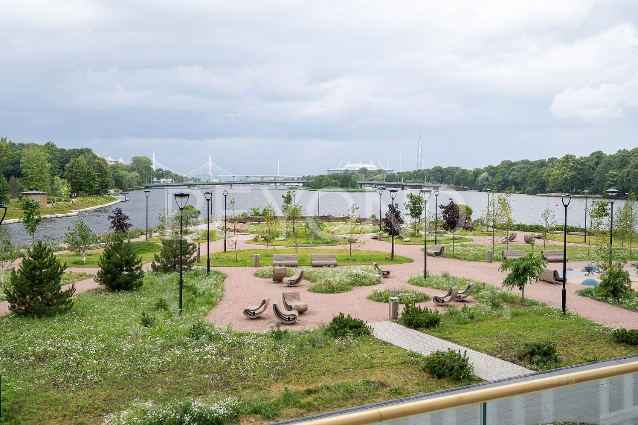 Редкое предложение! Предлагается к продаже роскошная видовая квартира общей площадью 265 кв. м с тремя спальнями и огромной кухней-гостиной, четырьмя санузлами, постирочной. Каждая из спален со своей гардеробной и балконом. Гостиная наполнена светом и воздухом. Ее огромные панорамные окна выходят на юг и на запад, там где соединяются Малая Невка, река Ждановка и Финский залив. В квартире выполнен высококлассный дизайнерский ремонт, особое внимание уделено выверенной стилистике, функционалу и премиальным отделочным материалам: оникс, панели из натурального дерева, латунь. Мебель Catelan Italy, Leight, Rete, техника Graude, Miele. Светильники от Ralph Lauren. Центральное кондиционирование во всех комнатах, современная система очистки воды, шторы на электроприводе и т.д.