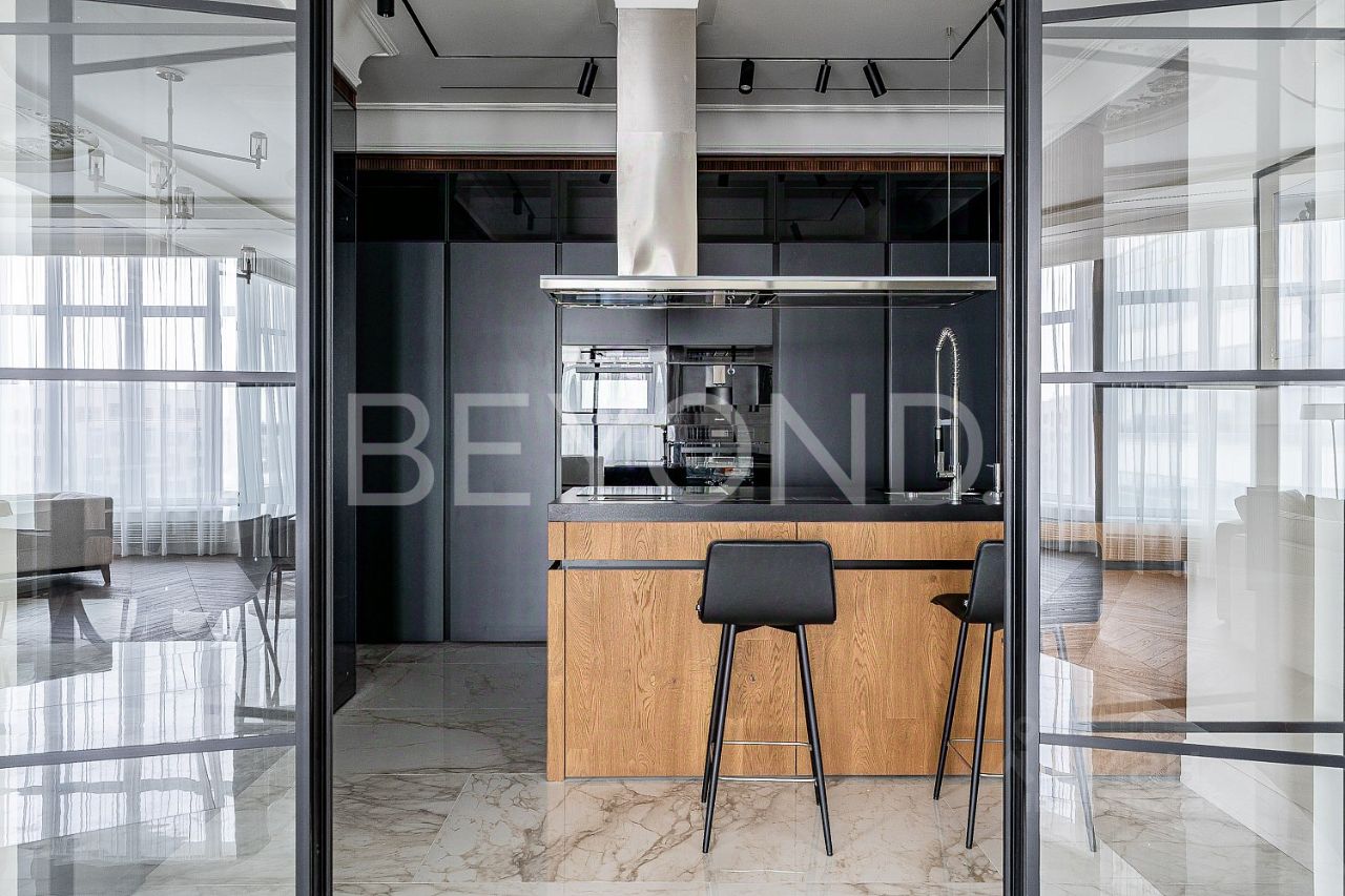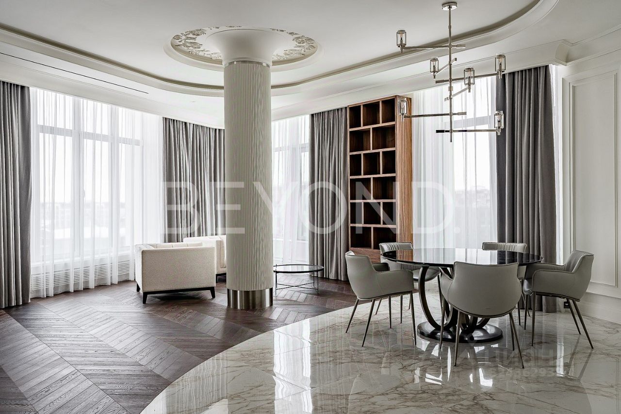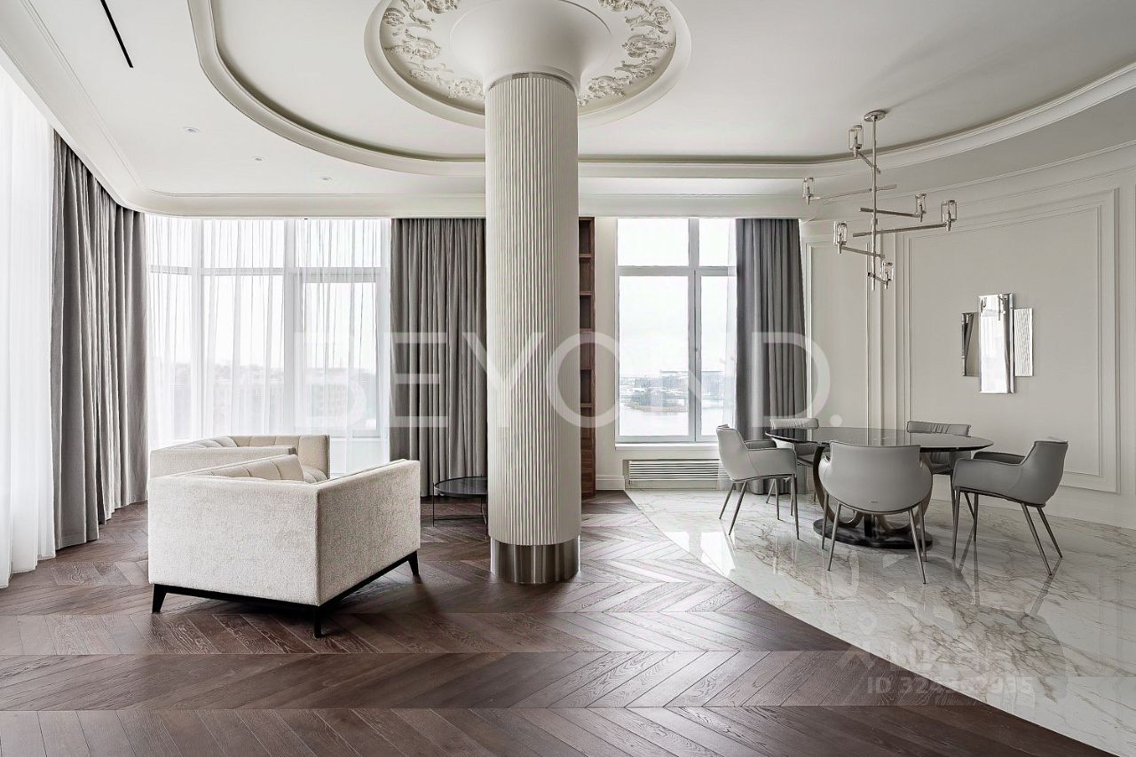Редкое предложение! Предлагается к продаже роскошная видовая квартира общей площадью 265 кв. м с тремя спальнями и огромной кухней-гостиной, четырьмя санузлами, постирочной. Каждая из спален со своей гардеробной и балконом. Гостиная наполнена светом и воздухом. Ее огромные панорамные окна выходят на юг и на запад, там где соединяются Малая Невка, река Ждановка и Финский залив. В квартире выполнен высококлассный дизайнерский ремонт, особое внимание уделено выверенной стилистике, функционалу и премиальным отделочным материалам: оникс, панели из натурального дерева, латунь. Мебель Catelan Italy, Leight, Rete, техника Graude, Miele. Светильники от Ralph Lauren. Центральное кондиционирование во всех комнатах, современная система очистки воды, шторы на электроприводе и т.д.
