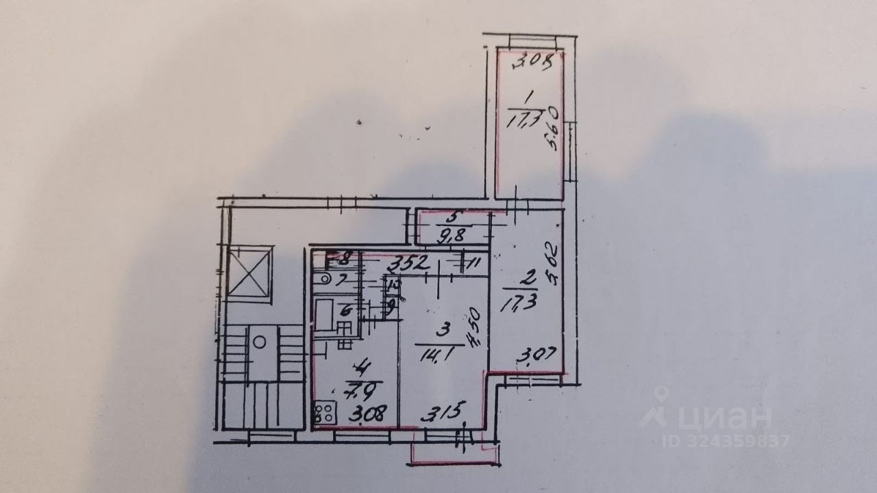 Жилая площадь составляет 48.7 . Кухня площадью 7.9 квадратных метров. Окна квартиры выходят во двор.