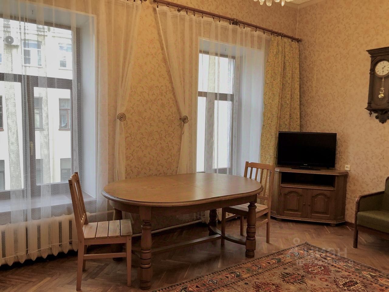 Светлая, просторная, с уютной атмосферой классики. Комнаты изолированные, высокий потолок, паркет и ламинат, окна — стеклопакеты.