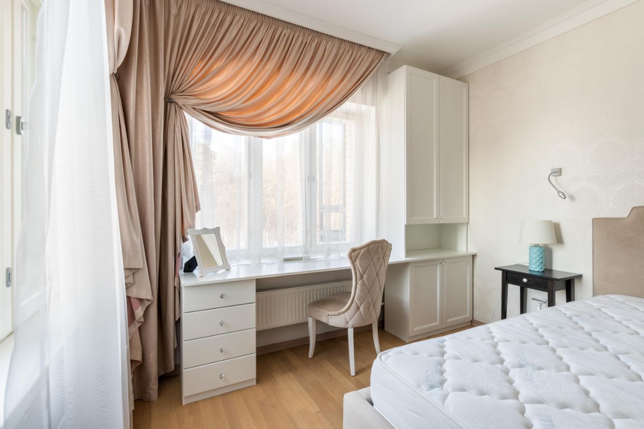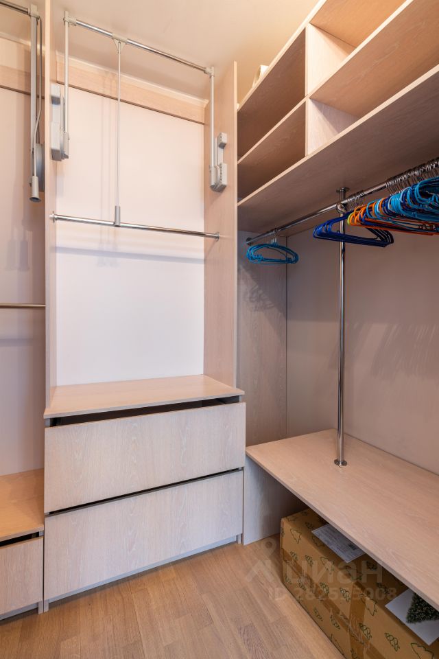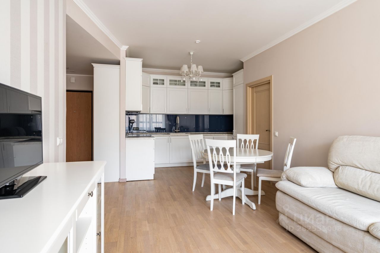 Две изолированных спальни и кухня-гостиная. Оборудованная гардеробная, раздельный санузел, панорамный балкон 6 м.