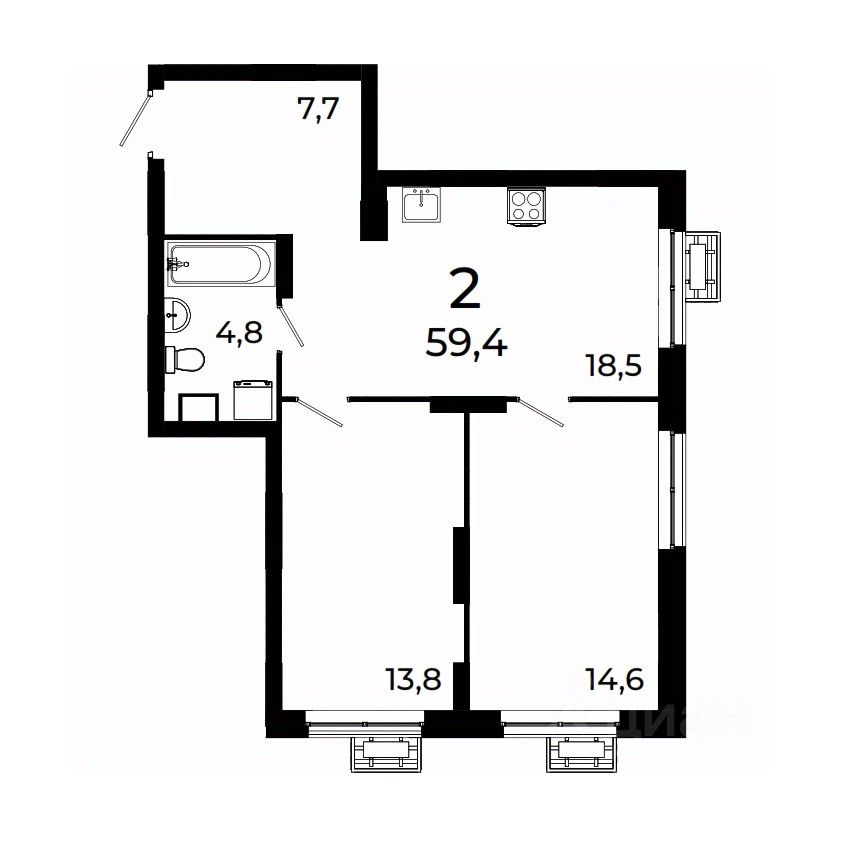 Продается 2-комнатная квартира площадью 59,4 кв.м на 7 этаже 19 этажного дома 3 в ЖК Сормово Парк.