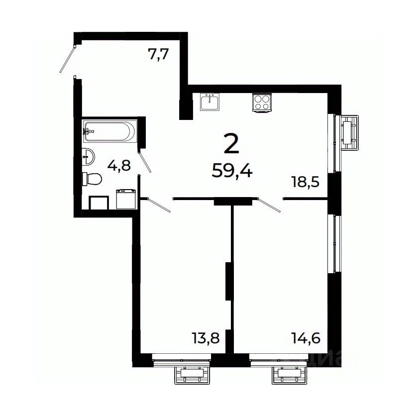 Продается 2-комнатная квартира площадью 59,2 кв.м на 19 этаже 19 этажного дома 3 в ЖК Сормово Парк.