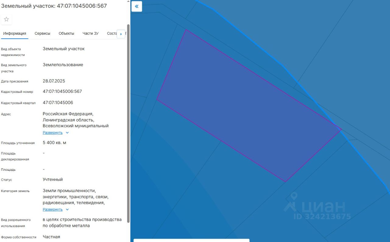 В промышленной зоне Ковалево, расположенной в 5 км от Рябовского шоссе, г. Санкт-Петербург, продаётся земельный участок площадью 5 400 кв. м.