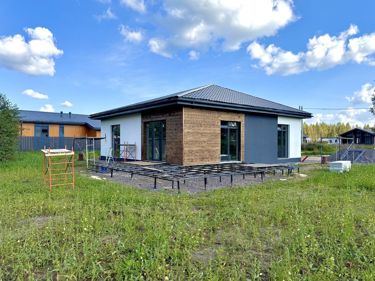 Продается 1-эт. коттедж в КП Мечта 2, общей площадью 136.7 кв.м., участок 10.94 сот. ''Посёлок ''Мечта-2'' это посёлок для комфортной загородной жизни с собственной инфраструктурой. От ''Мечты-2'' до Санкт-Петербурга 20 км, что позволяет обустроить здесь дом для постоянного проживания. Поселок хорошо вписан в природное окружение, вокруг чистый воздух, зелёные леса, реки и озёра. Настоящий клад для тех, кто мечтает жить за городом в комфортных условиях. Всего 234 участка площадью от 7 до 14 соток, без обязательного подряда и регламента застройки. С возможностью регистрации домов и прописки.