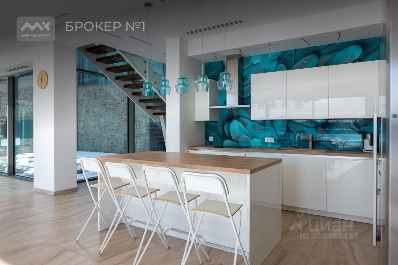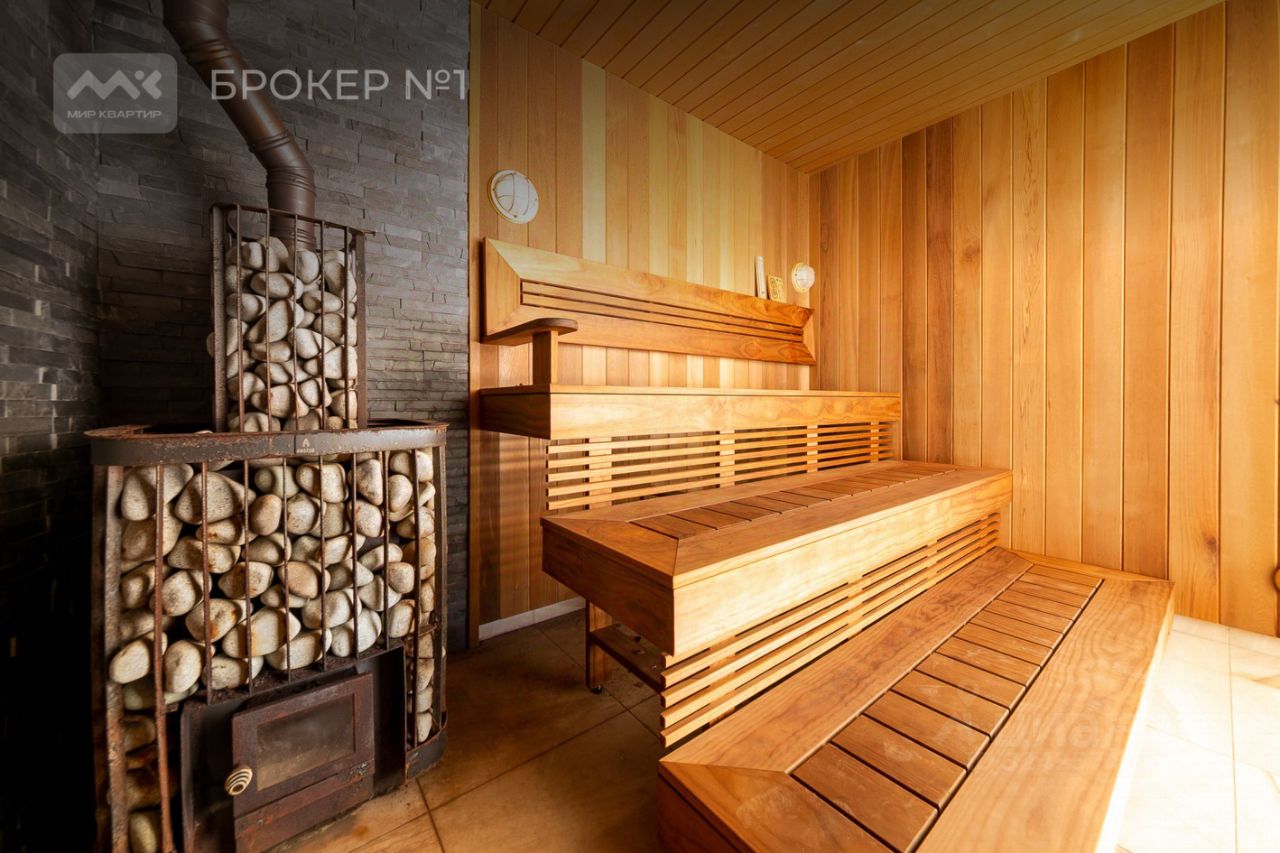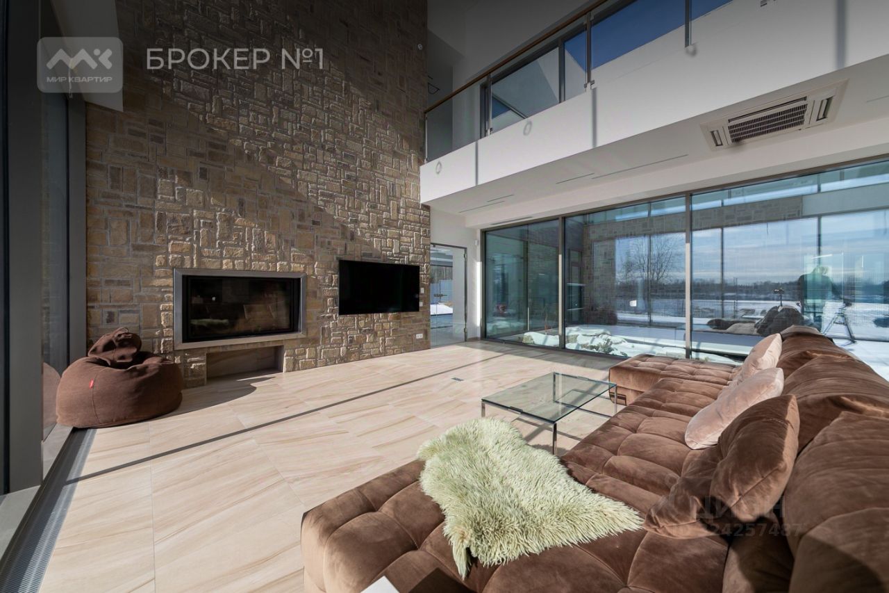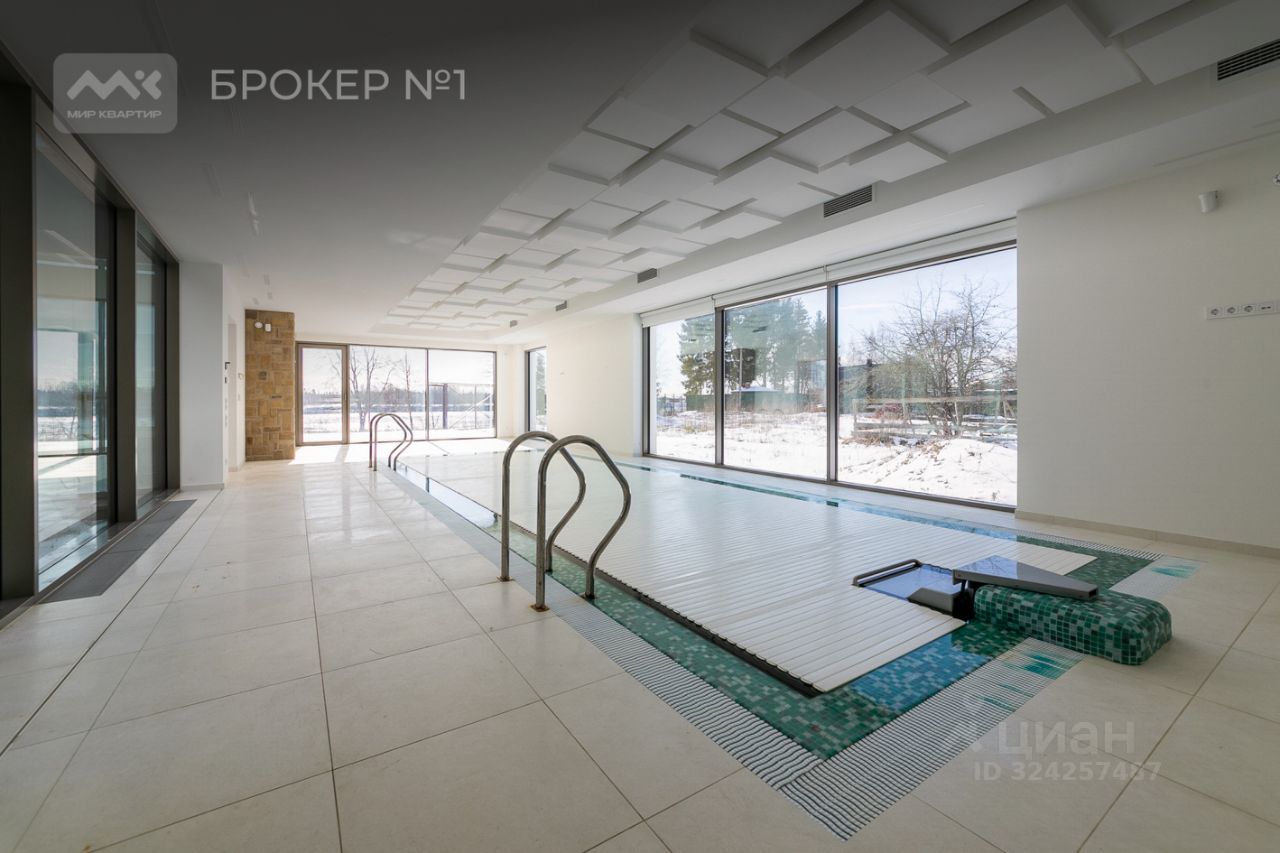 На первом этаже гостиная наполненная солнечным светом с 8ми метровыми потолками, камином и уютным диваном. На кухне есть кухонный остров и вся необходимая техника. Просторный 9ого метровый бассейн с панорамными окнами оснащен мощной системой противотока для самых эффективных тренировок. Вы точно оцените нашу прекрасную баню, после которой можно окунуться в прохладную купель.