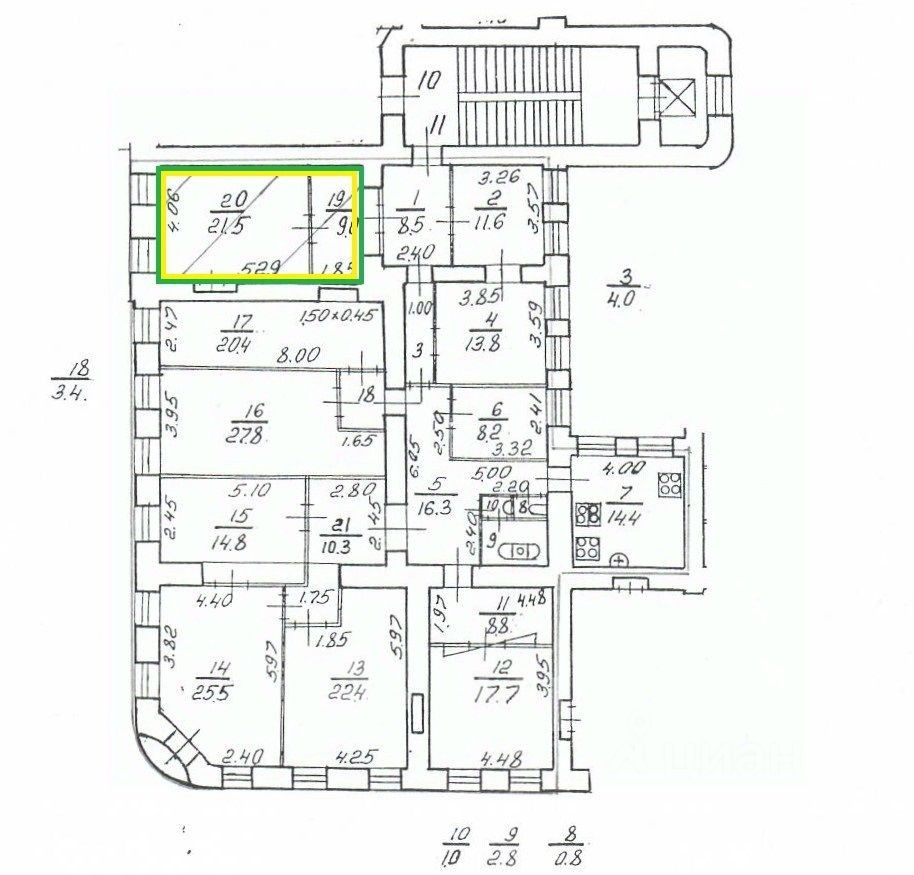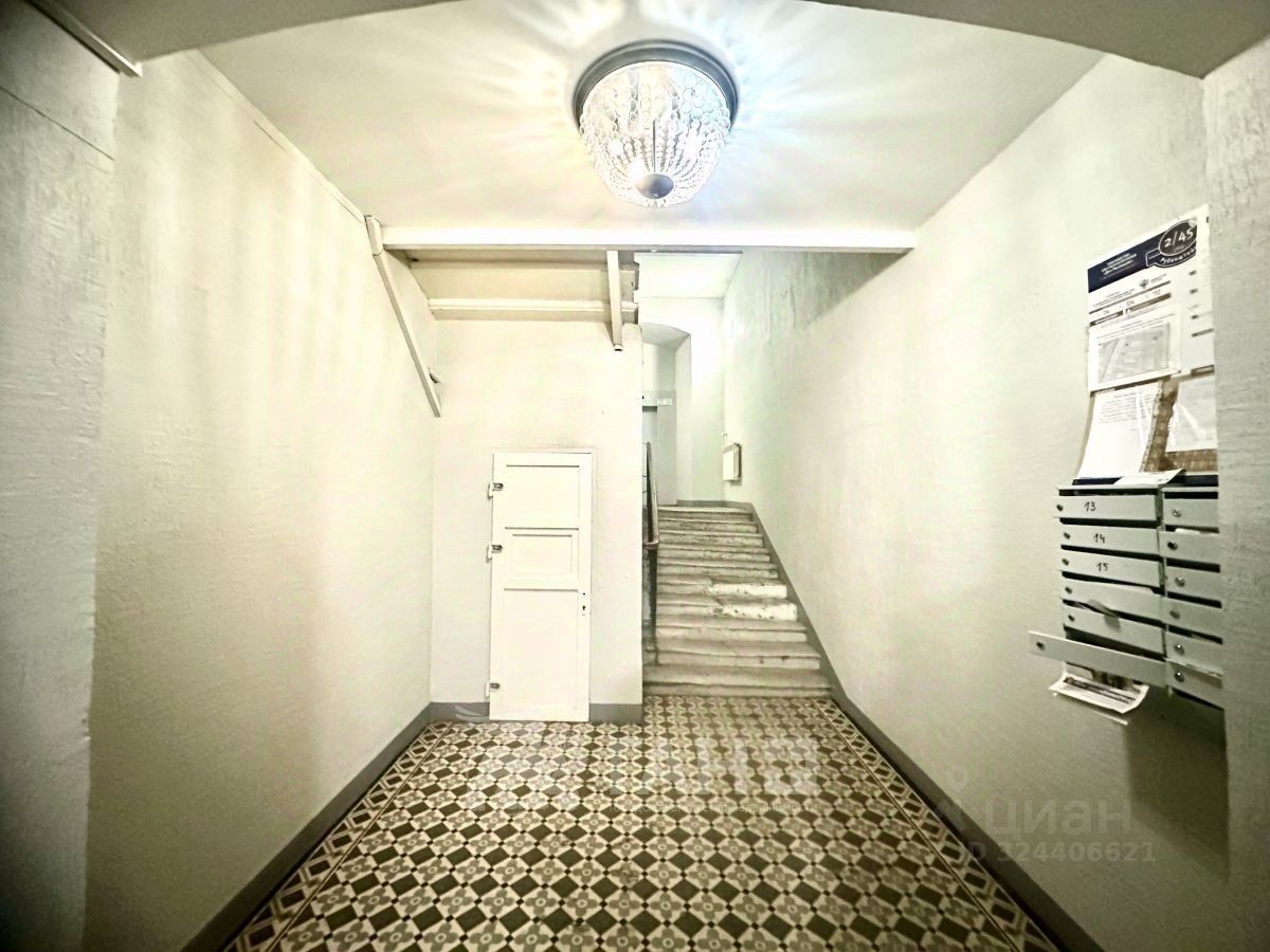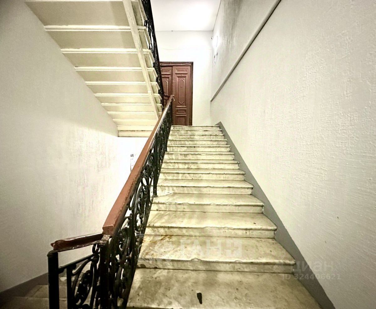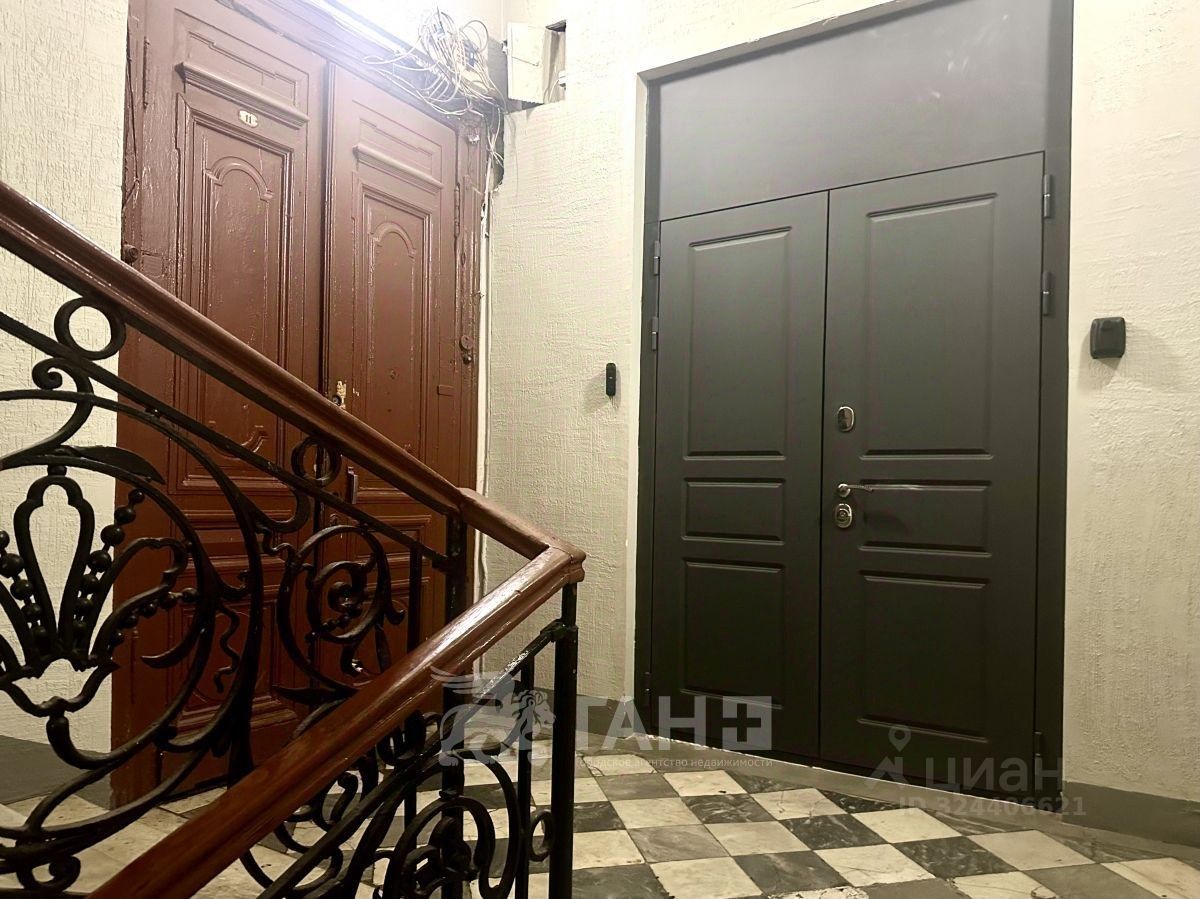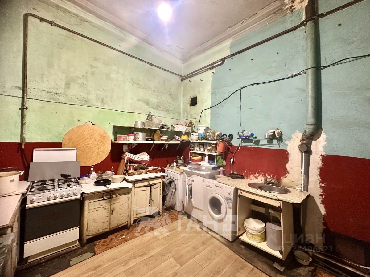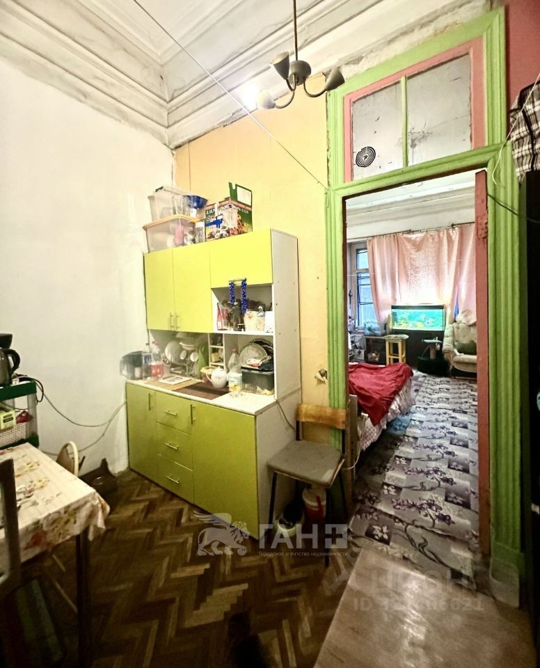 Комната расположена в 10-комнатной коммунальной квартире, в доме на углу улицы Рубинштейна и Невского проспекта.