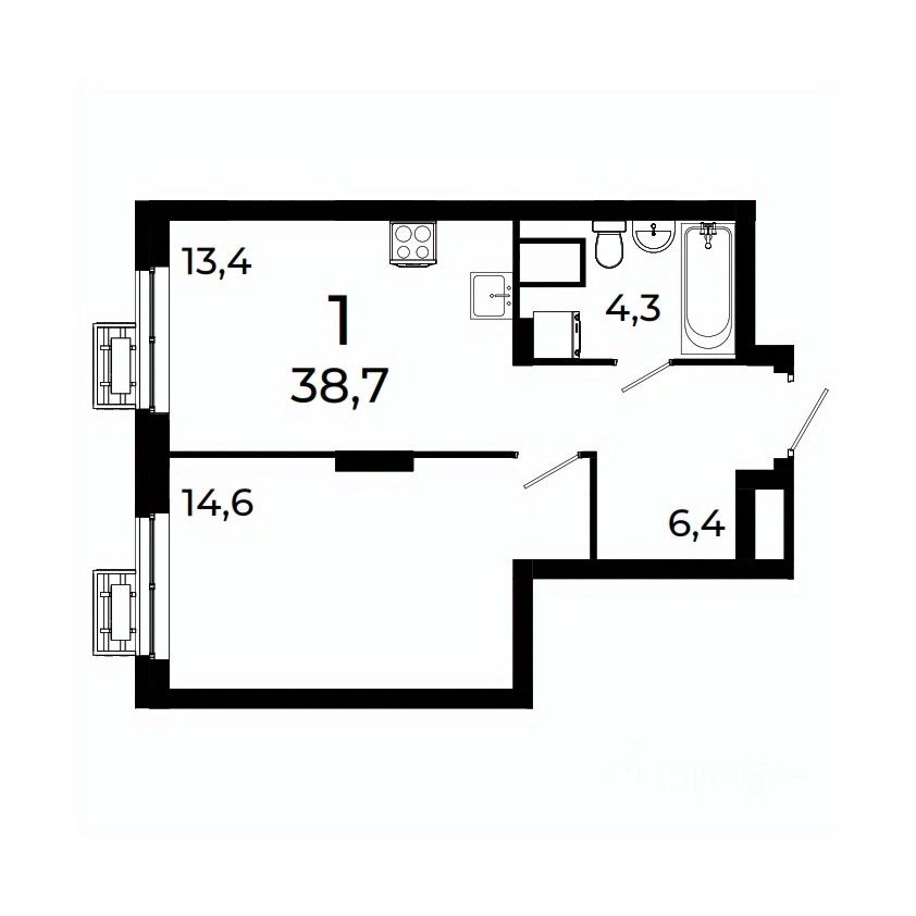 Продается 1-комнатная квартира площадью 38,7 кв.м на 7 этаже 19 этажного дома 3 в ЖК Сормово Парк.