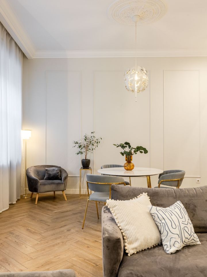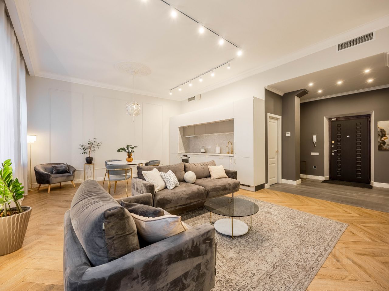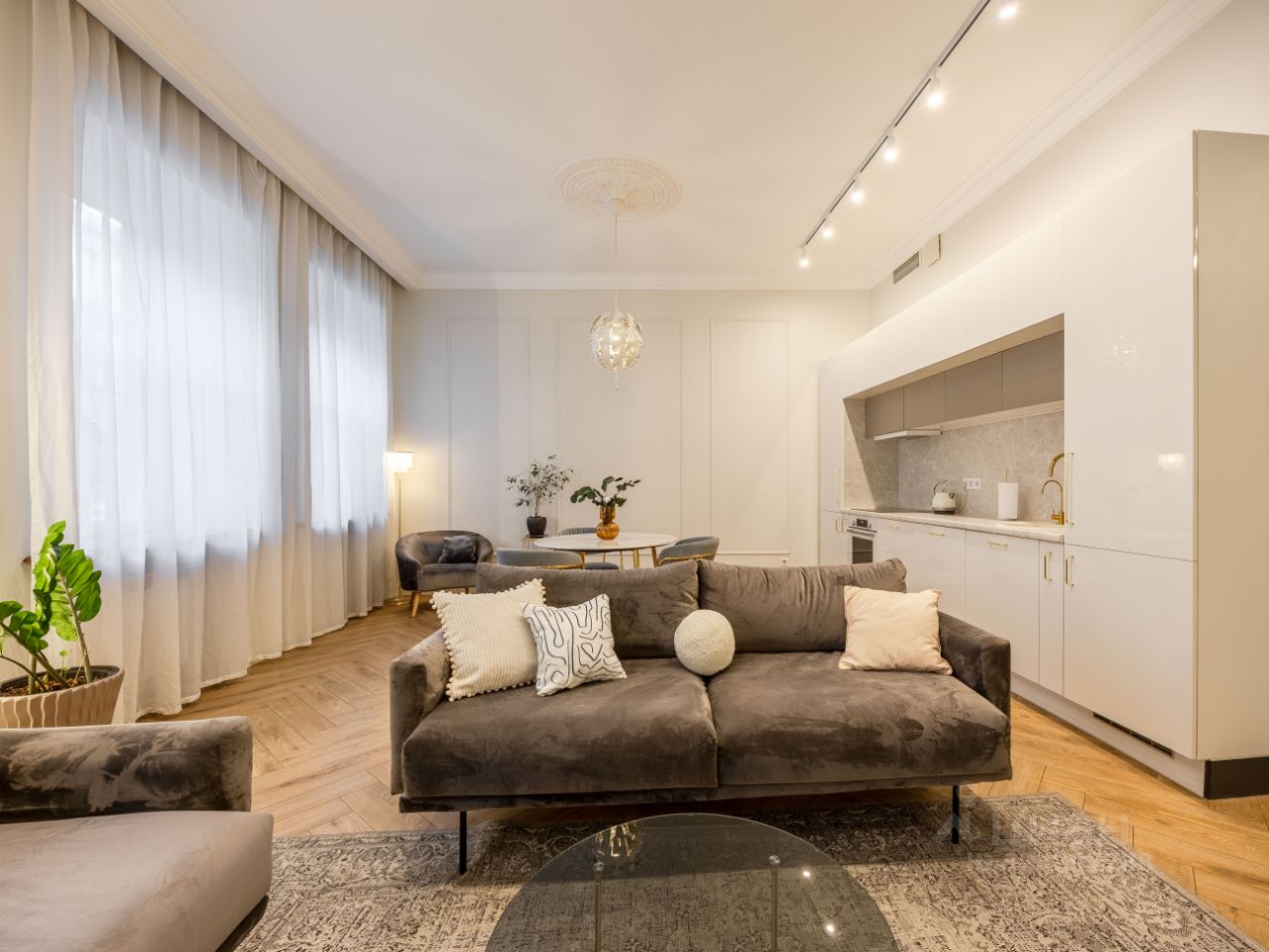 Квартира площадью 80 м² расположена на комфортном втором этаже кирпичного дома 1900 года. Высокие потолки 3,3 м, большие окна с видом на улицу, продуманная планировка и дизайнерский ремонт создают ощущение простора и легкости. Здесь всё устроено так, чтобы вы могли просто заехать и жить: уютная спальня, светлая кухня-гостиная 20 м², просторная гардеробная и современный совмещённый санузел.