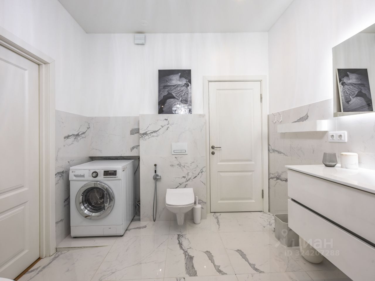 Квартира продаётся полностью оснащённой техникой — остаются холодильник, плита, микроволновка, посудомоечная и стиральная машины, водонагреватель и телевизор.