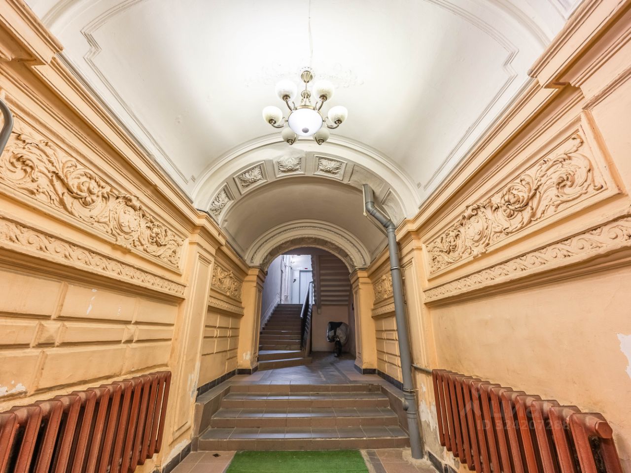Дом тихий и ухоженный, с приятной парадной и закрытой территорией. Во дворе — парковка за шлагбаумом, что особенно ценно в Центральном районе. Лифт есть, подъезд чистый, соседи спокойные. Локация — одна из лучших: вокруг архитектура конца XIX века, уютные кафе, Таврический сад, Невский проспект и несколько станций метро в шаговой доступности.