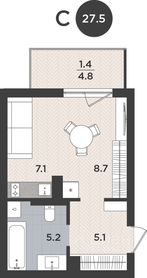Квартира 341. Жилой комплекс Левада это место, где комфорт встречает функциональность, а стиль несет в себе простоту и уют.