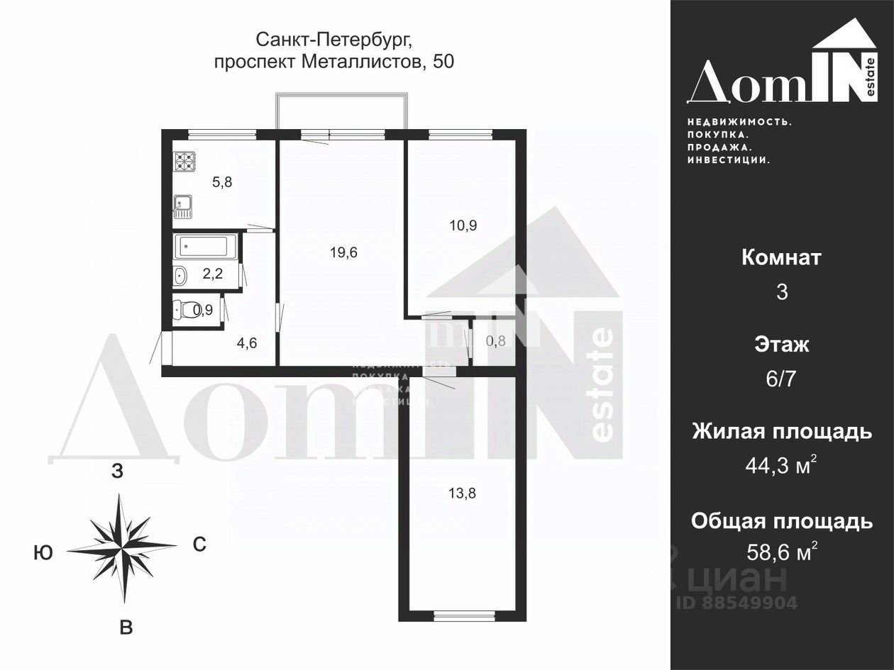 продам 3-к, Металлистов проспект, 5016 000 000 ₽