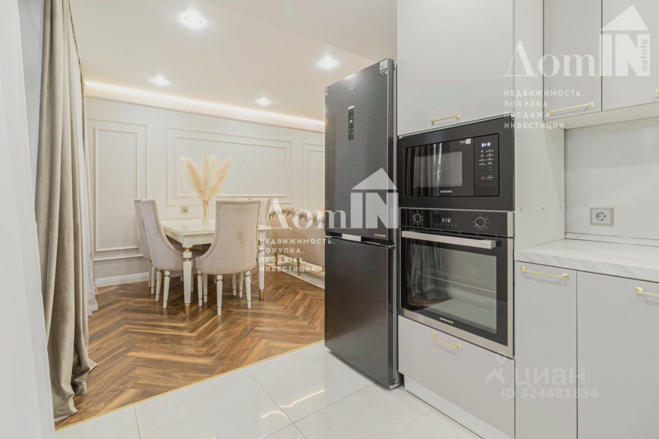 Кухня оборудована встроенной бытовой техникой премиум-класса, включая посудомоечную машину, духовой шкаф и варочную панель, в зонированная гостинная большая зона отдыха с дизайнерским диваном, а так же с зоной которая позволит вам собраться всей семьей за одним столом, в санузле установлена премиальная сантехника. Спальни оформлены в спокойных тонах, обеспечивающих уют и полноценный отдых. Вся мебель и техника остается.