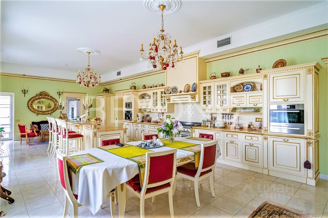 В закрытом поселке ''Малое Репино'' на функциональном участке в 83 сотки расположено харизматичное поместье в английском стиле. Фасады основного и гостевого домов выполнены в благородном красном цвете кирпича, истинный английский стиль подчеркнут строгими окнами в белых рамах, равномерно расположенных по всему периметру. Основной дом площадью 970 кв. м имеет два жилых этажа и цокольный уровень, оборудованный под SPA. К центральному входу ведет классический кольцевой подъезд для автомобилей, вымощенный камнем, а сам вход в дом представлен террасой с высокими белыми колоннами, что добавляет торжественности. Загородные дома в английском стиле пользуются популярностью по всему миру, это классика, которая всегда актуальна и никогда не выходит из моды. На территории участка выполнен ландшафтный дизайн, высажены деревья и кустарные растения, прогулочные зоны оформлены фонарями, скамейками, статуями и фонтанными группами. Помимо основного дома на территории построены гостевой дом с банным комплексом, оборудованы детская площадка, беседка, зона барбекю и зона отдыха с шезлонгами, теннисный корт атрибут королевского вида спорта. Крытый гараж на два машино - места прилегает к основному дому, из него хозяева имеют прямой доступ в дом. Дополнительное строение имеет назначение хозяйственного блока и включает в себя квартиру для охраны и гараж на четыре автомобиля.