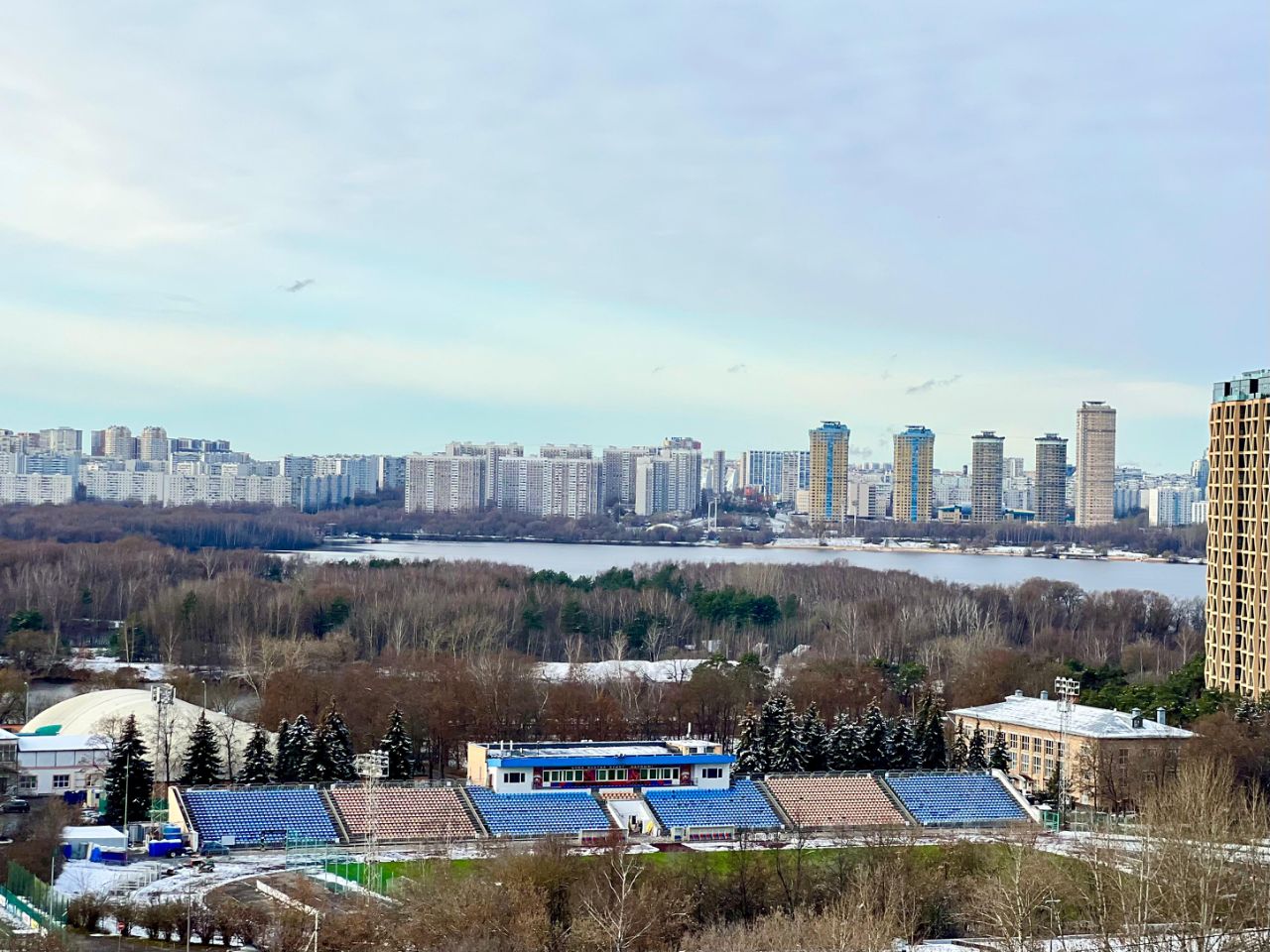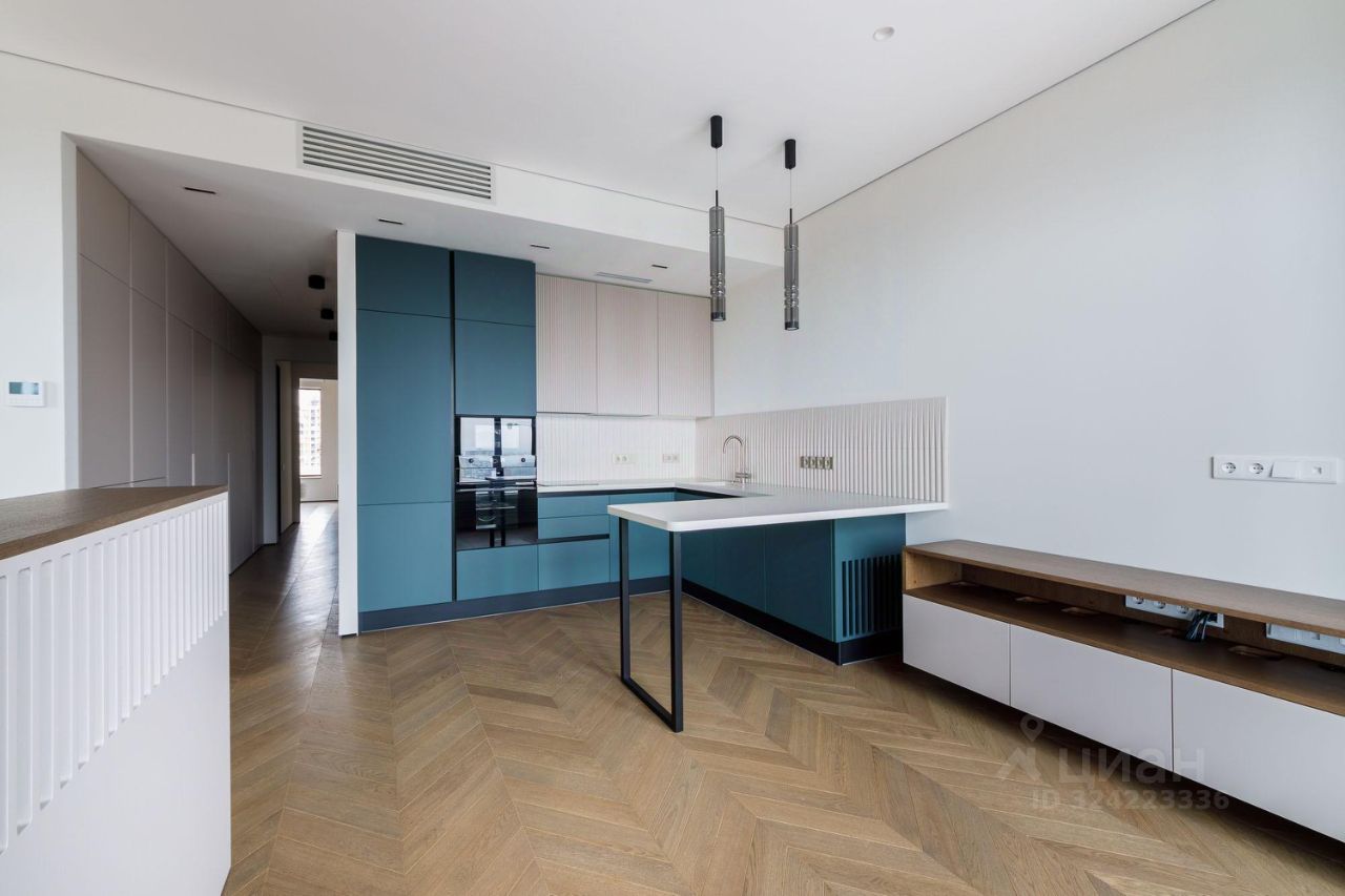 Предлагаем к покупке квартиру общей площадью 103,2 кв.м., расположенную на комфортном 12 этаже с видом на Строгинскую пойму в жилом комплексе бизнес-класса ''Серебряный парк''.