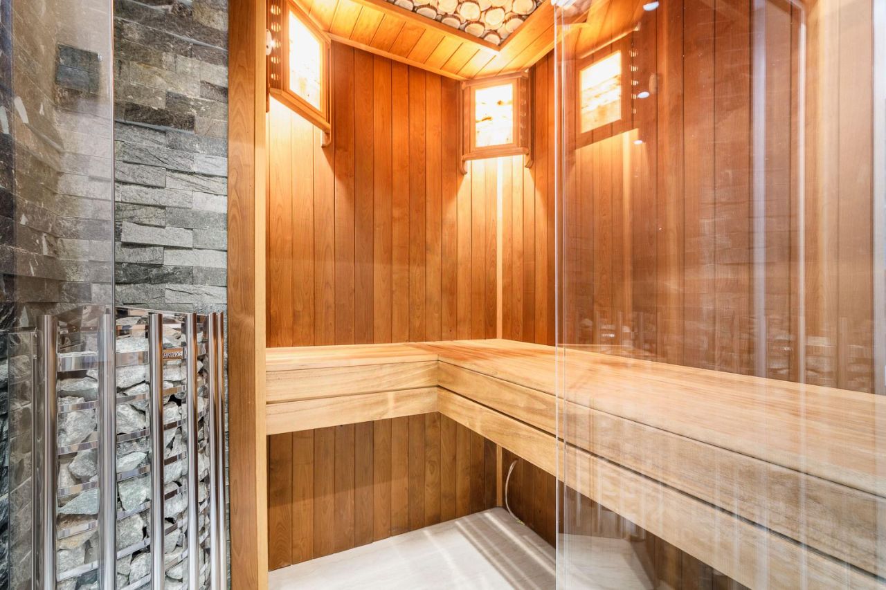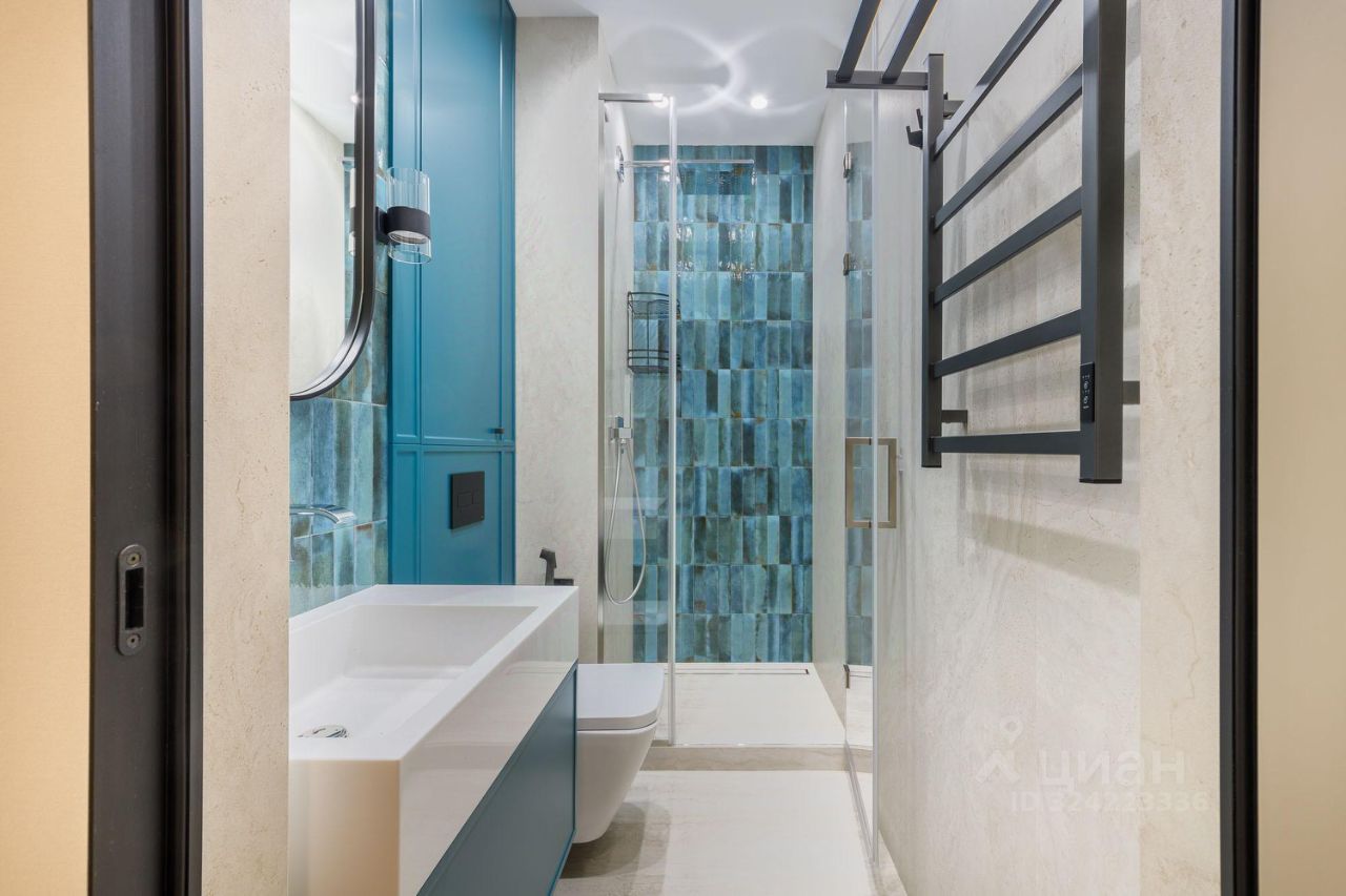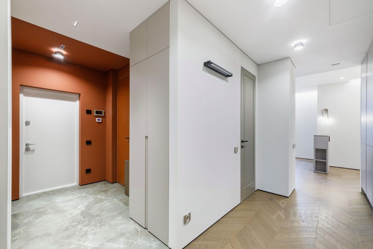 В ремонте использовались качественные современные материалы, а также: - выполнена шумоизоляция стен и пола - уложена инженерная доска Finex, рисунок французская ёлка - в санузлах - крупноформатный керамогранит - обои Andrea Rossi - установлены двери, раздвижные перегородки Union и дверь-пенал Eclisse - установлена индивидуальная система приточно-вытяжной вентиляции с фильтрацией и подогревом воздуха в каждой комнате и санузлах - каждая комната оснащена системой кондиционирования канального типа MDV - встроенные смесители и гиг. души Hansgrohe - встроенная душевая система Grohe - все мокрые точки оборудованы проточными водонагревателями - на кухне установлены фильтр для питьевой воды Atoll и измельчитель пищевых отходов - унитазы Villeroy&Boch - увеличенная ванная 180см - система защиты от протечек в мокрых точках и на каждом радиаторе - коллекторное подключение радиаторов (возможность отключения любого по отдельности) - входная дверь Стал с замком с максимальной взломостойкостью - кухня Дятьково-дизайн - бытовая техника Smeg и Liebherr - стиральная и сушильная машины Asco - установлена встроенная мебель с подсветкой - окна с алюминиевым профилем Rayners 2.4х2.4м с заниженным подоконником 60см - сауна с облицовкой можжевельником и змеевиком - один из санузлов с окном - карнизы штор с электроприводом - в спальных комнатах также рулонные шторы с электроприводом - выключатели и розетки BTchino - система мультирум с потолочными динамиками Martin Logan в каждой комнате и в ванной, а также сделан вывод под установку акустики в сауне - подготовка под домашний кинотеатр по проекту от pult ru (Назаров) - видеодомофон Fermax - проведен интернет от МТС, роутер и интернет-розетки в каждой комнате - пожарная сигнализация