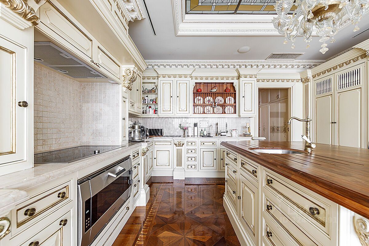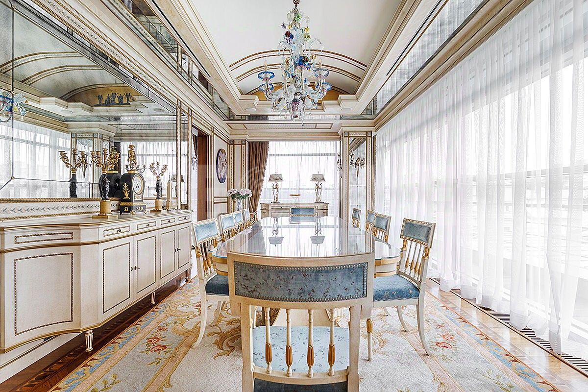 Мебель и техника премиальных марок. Отделка выполнена в лучшем качестве с использованием самых дорогих и качественных материалов. Дерево в интерьере-орех. Паркет -дуб. Мебель Bussandri и Pozzoli. Кухня Clive Cristian. Холодильник SubZero Стиральная и сушильная машинка Miele Бытовая техника Goggenau.