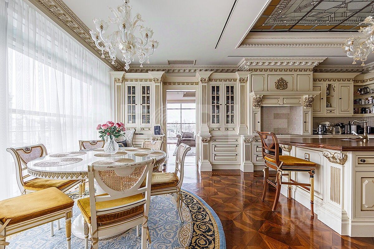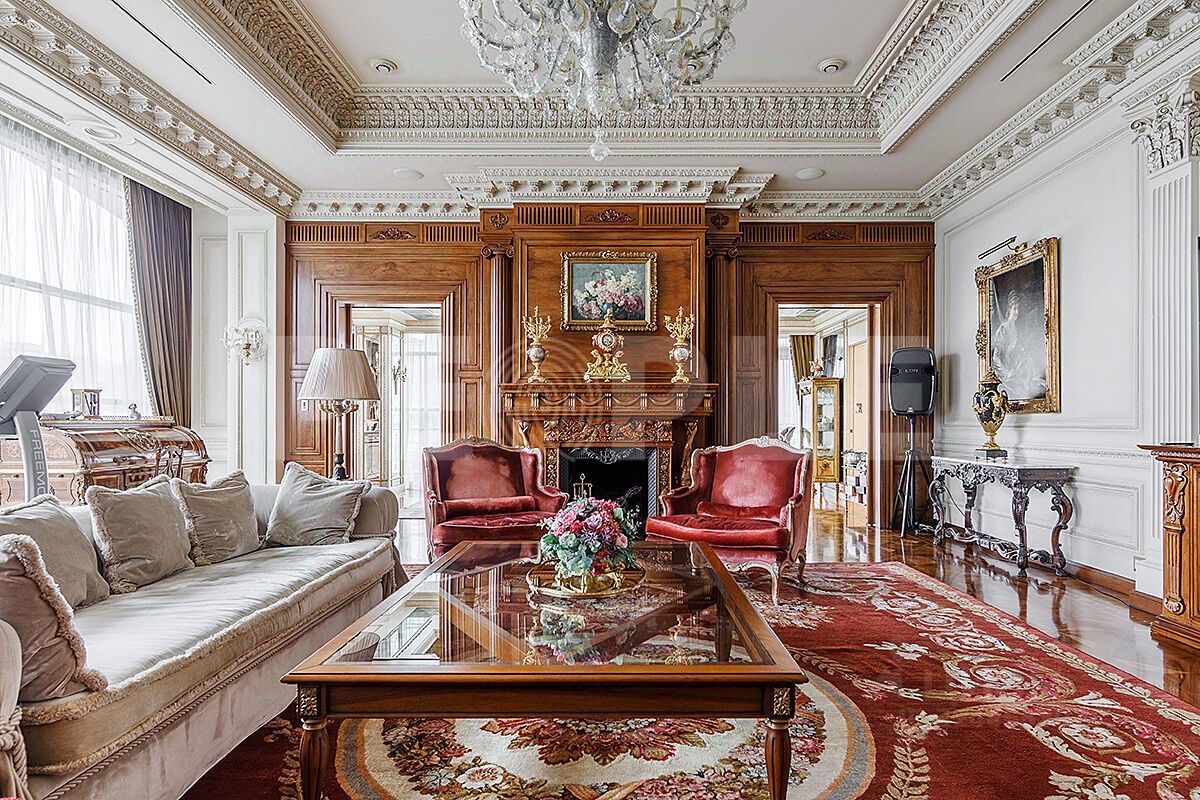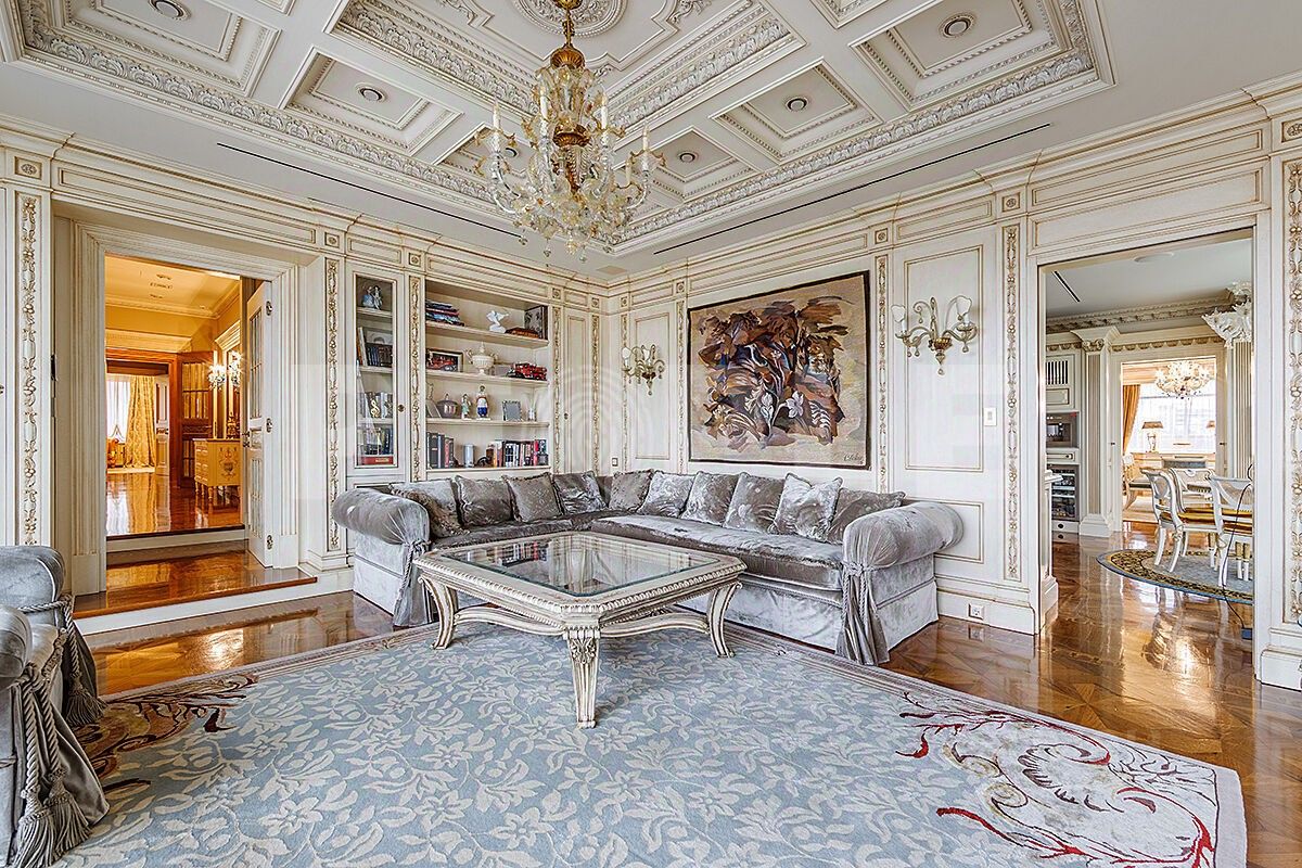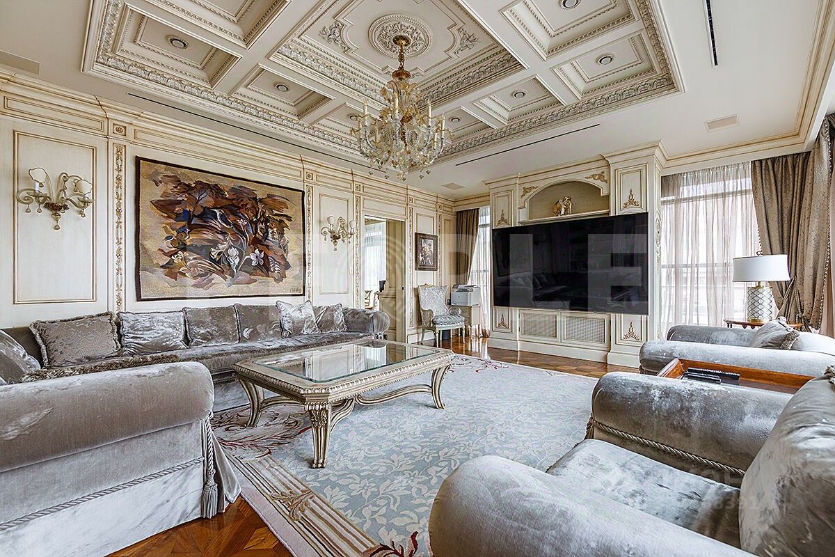 Роскошная гостиная с действующим камином и выходом на террасу, уютная и торжественная одновременно. Просторная прихожая, гардеробная - все удобно и красиво. В апартаментах предусмотрено зонирование пространства. Спальни отделены от зоны гостиной и прихожей, это обеспечивает тишину и приватность. Рядом с кухней есть ещё одна малая гостиная, уютная и атмосферная.