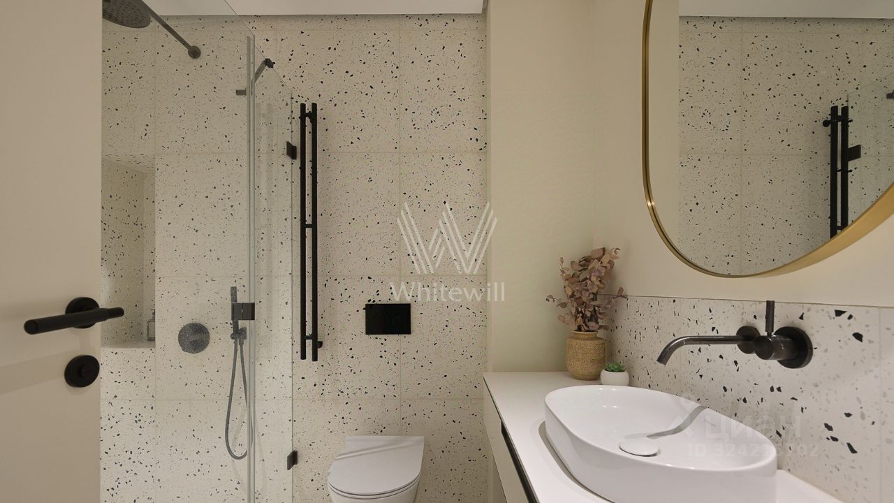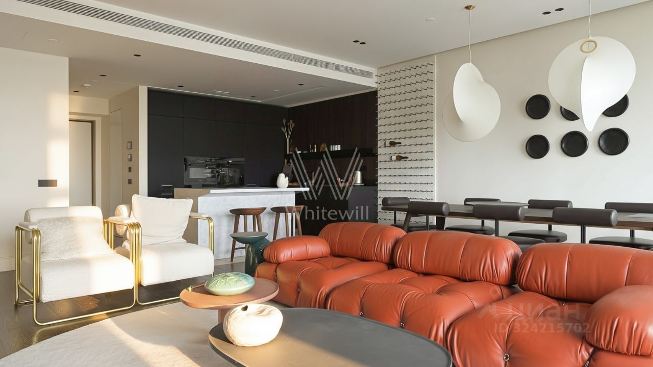 Функциональная планировка включает просторную кухню-гостиную с обеденной зоной, мастер-спальню с собственной гардеробной и ванной, вторую спальню, два санузла и холл. Благодаря панорамному остеклению пространство наполнено светом и теплом, открываются виды на парк Победы.