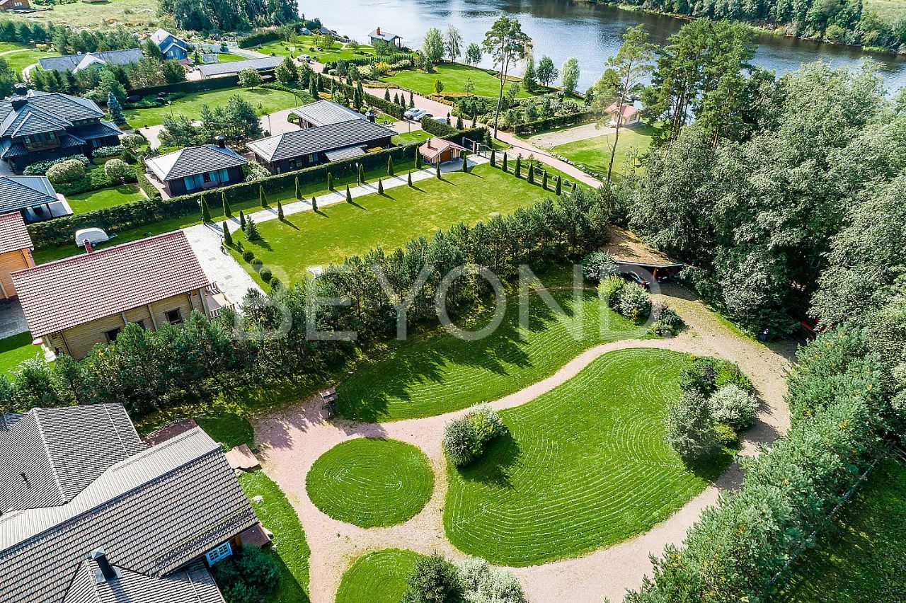 Предлагается к продаже усадьба, расположенная на участке площадью 1,1 га. Основной дом 246 кв. м из цельного бруса особо ценной породы алтайского кедра (400 мм / 220 мм). Древесина особо ценной породы обладает уникальными целебными свойствами, долговечностью, устойчивостью к гниению и старению. Благоприятно влияет на общее состояние организма, улучшая самочувствие и укрепляя иммунитет. Дом, его внутреннее пространство и интерьеры спроектированы и реализованы художником и скульптором с международным признанием. Высокие потолки. На первом этаже - просторная гостиная высотой 6 метров с примыкающей современной кухней-столовой. Четыре спальни, два санузла, финская сауна, гардеробные. На мансардном этаже пространство свободного назначения. Усадьба расположена на первой линии реки Бурная, в устье Ладожского озера. Собственная пристань и глубина позволяют причалить судну ''река-море'', обеспечивая легкий доступ к водным маршрутам региона, выход в Ладогу и через Неву в Балтику. Обширная благоустроенная территория с насаждениями и газонами, собственным живописным прудом с рыбами и лилиями. Участок защищен буферной парковой зоной 10 га. Автономность обеспечивается газовой котельной, дублированной дровяной котельной, собственная артезианская скважина с прекрасными питьевыми показателями, собственная ЛЭП и подстанция, круглосуточная охрана периметра, КПП. Дополнительно на территории расположен отдельный гостевой дом из бруса площадью 100 кв. м. Этот объект представляет собой идеальное сочетание эксклюзивного дизайна, экологически чистого строительства и уникальных природных условий, создавая неповторимую атмосферу комфорта и здоровья. Идеален для семейного отдыха и приема гостей. Живописный участок с усадьбой располагается вблизи реки Бурная, всего в 1,5 километрах от ее выхода в Ладожское озеро. Окружающий пейзаж прекрасно дополняет бескрайний хвойный лес Приозерского района. Полное единение с природой не отменяет удобного расположения относительно развитой инфрастуктуры - для резидентов обеспечена комфортная доступность к ближайшим торговым и социально-развлекательным объектам. Например, легко можно оказаться на курорте ''Игора'', посетить профессиональную гоночную трассу ''Игора Драйв'', рестораны и магазины. В 25 минутах выезд на Новоприозерское шоссе.