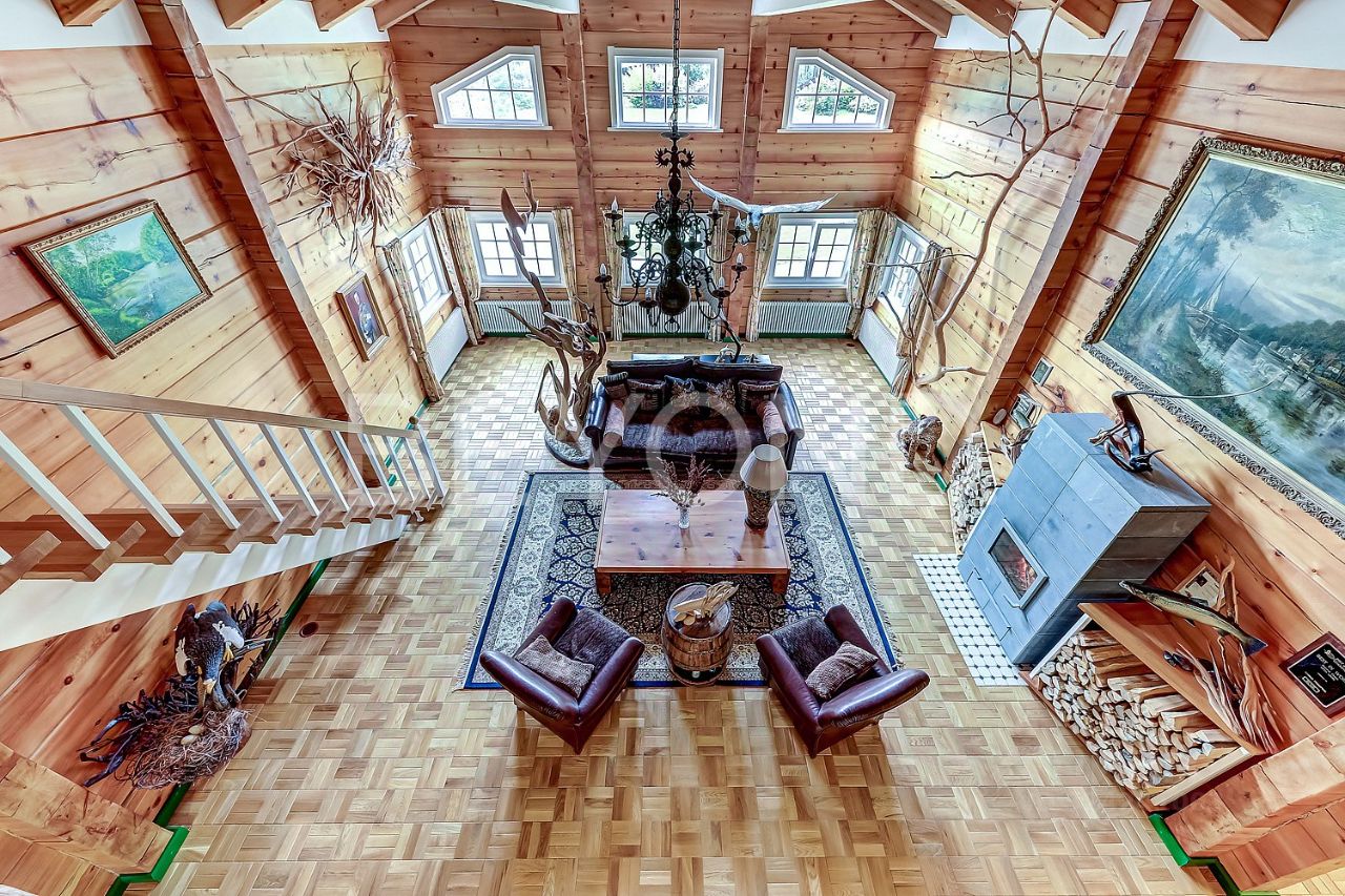 Предлагается к продаже усадьба, расположенная на участке площадью 1,1 га. Основной дом 246 кв. м из цельного бруса особо ценной породы алтайского кедра (400 мм / 220 мм). Древесина особо ценной породы обладает уникальными целебными свойствами, долговечностью, устойчивостью к гниению и старению. Благоприятно влияет на общее состояние организма, улучшая самочувствие и укрепляя иммунитет. Дом, его внутреннее пространство и интерьеры спроектированы и реализованы художником и скульптором с международным признанием. Высокие потолки. На первом этаже - просторная гостиная высотой 6 метров с примыкающей современной кухней-столовой. Четыре спальни, два санузла, финская сауна, гардеробные. На мансардном этаже пространство свободного назначения.